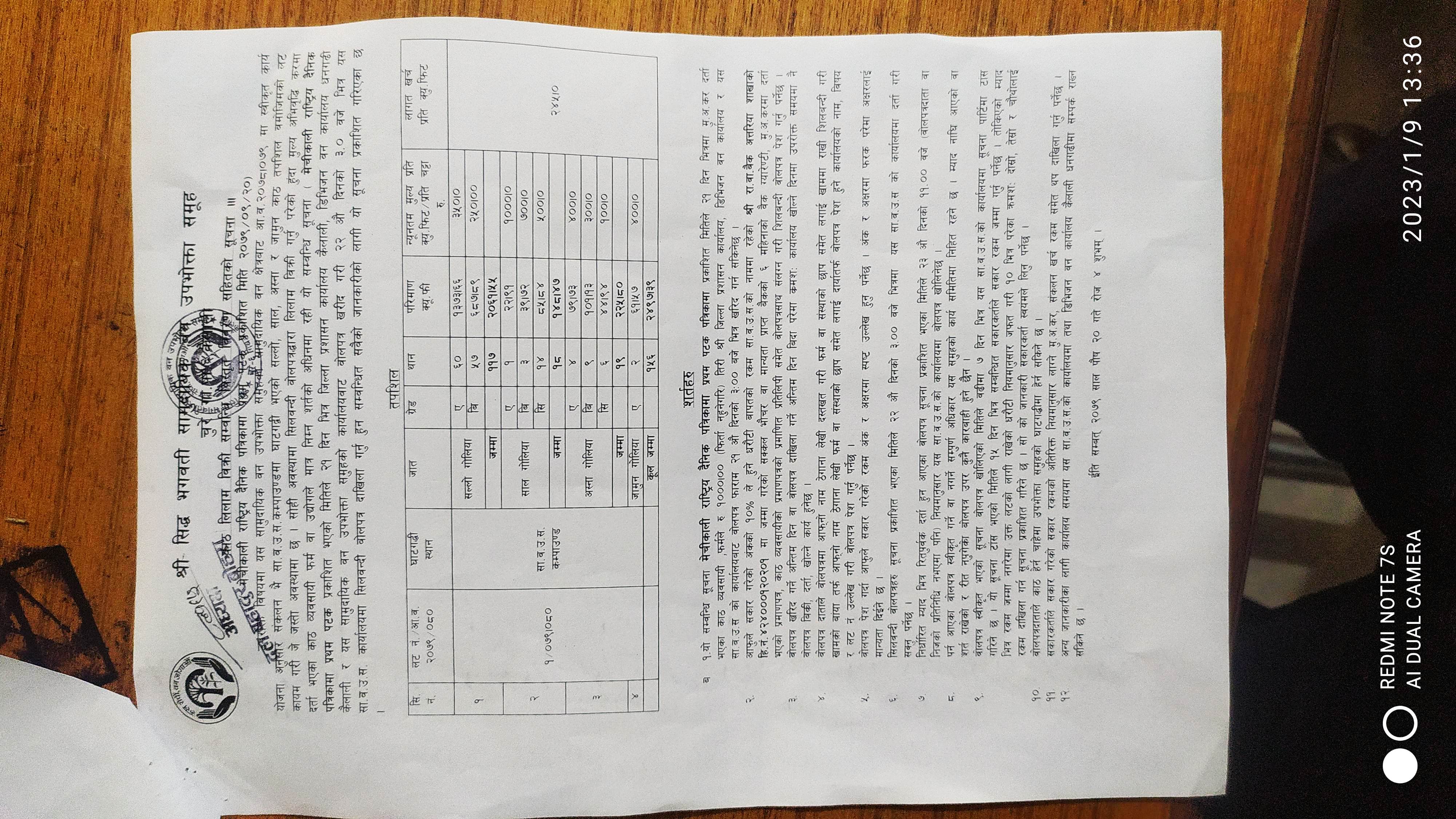 श्री सिद्धभगवती सा.व.उ.समूह चुरेको सूचना ।