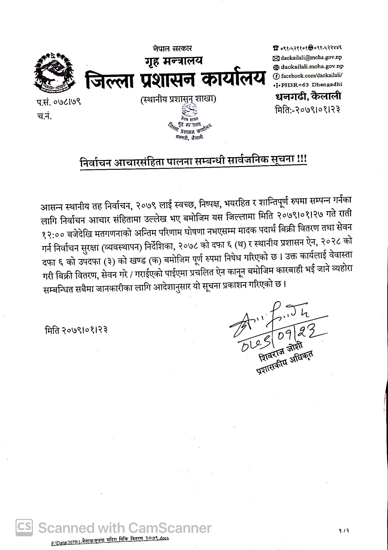 सूचना (मदिरा विक्री वितरण र सेवन गर्न निषेध)