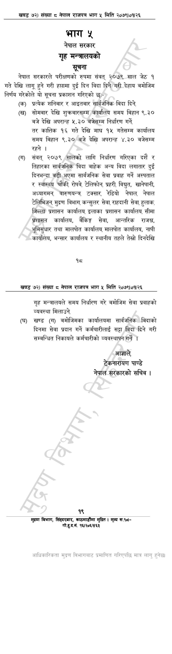 सार्बजनिक बिदा सम्बन्धी सूचना