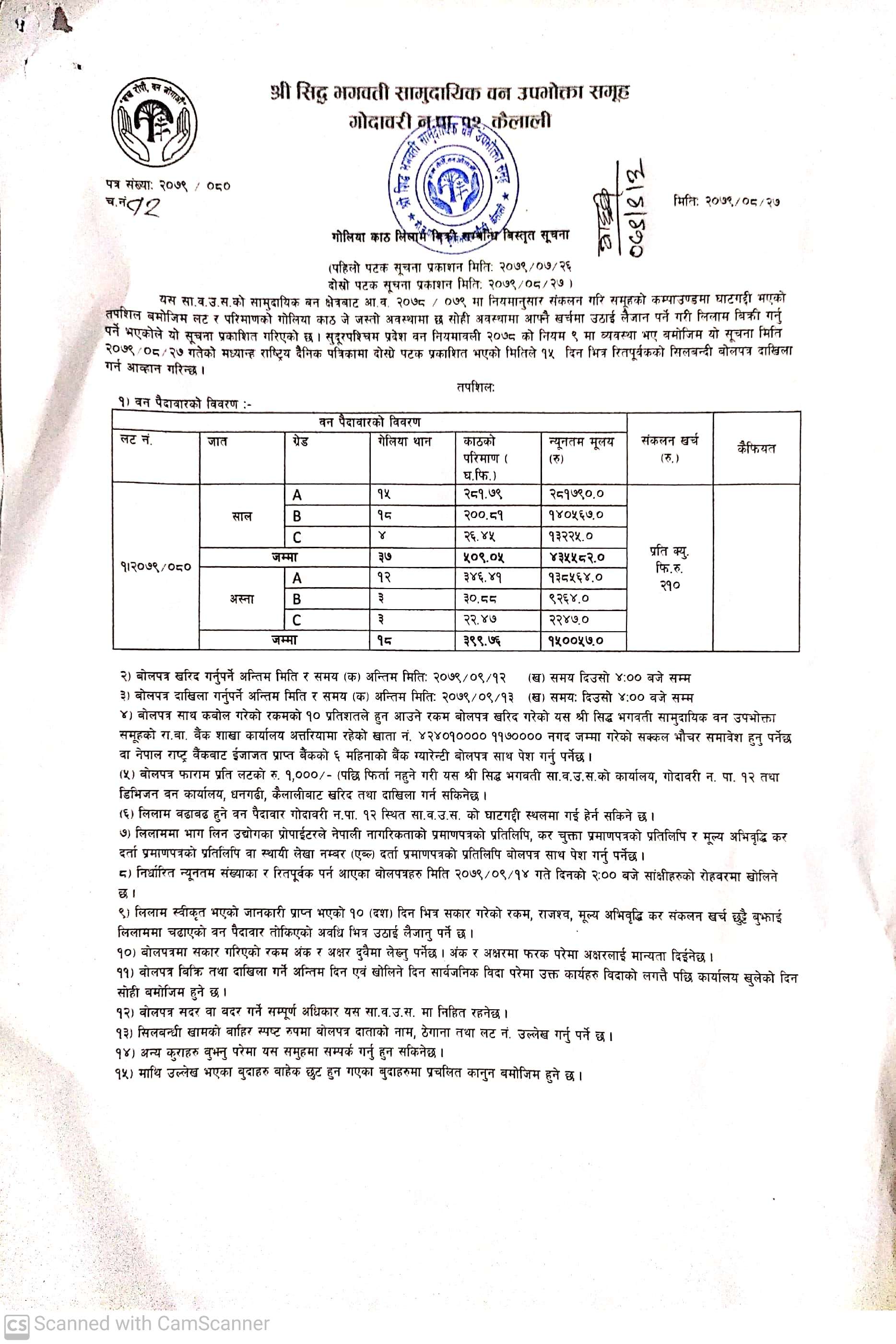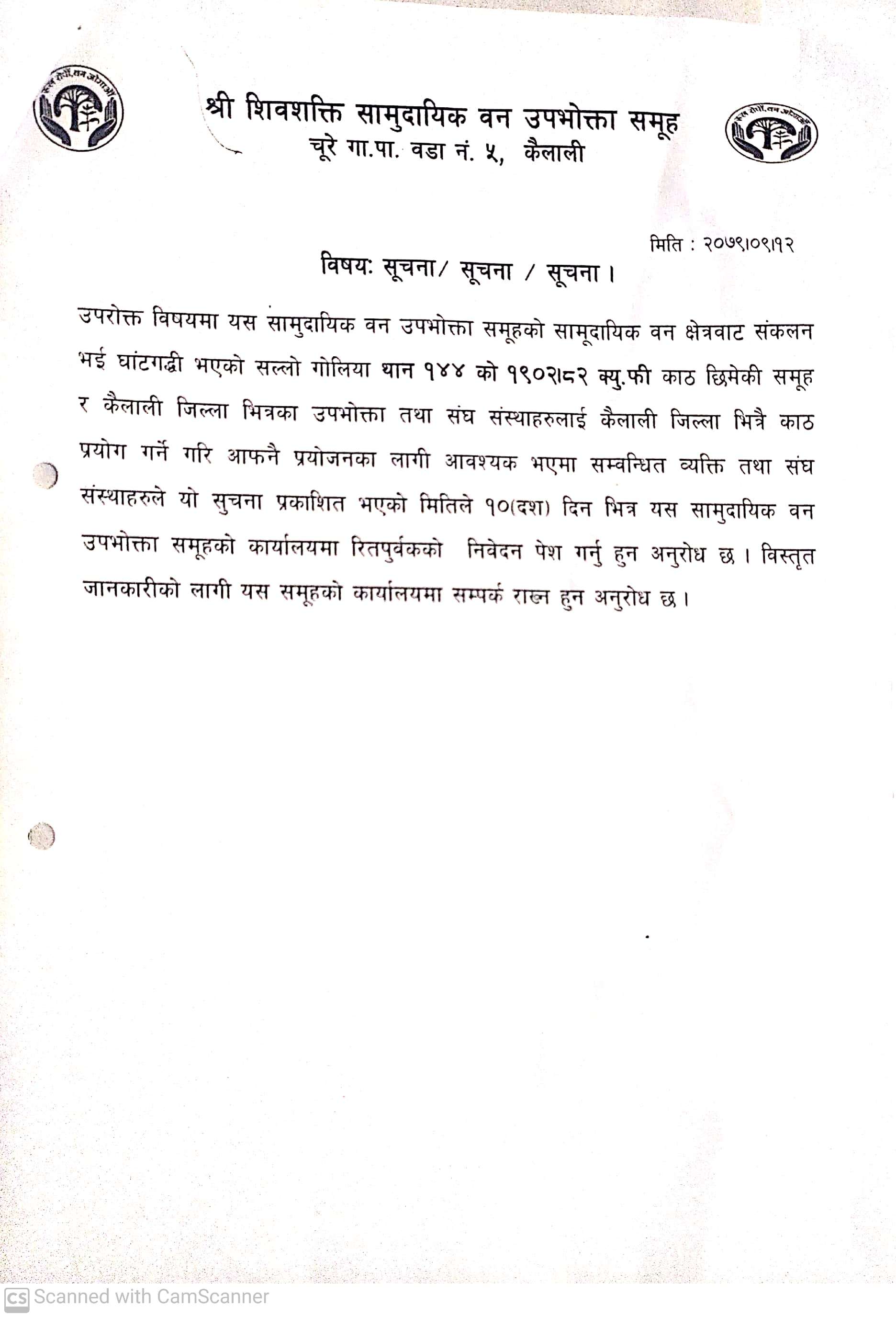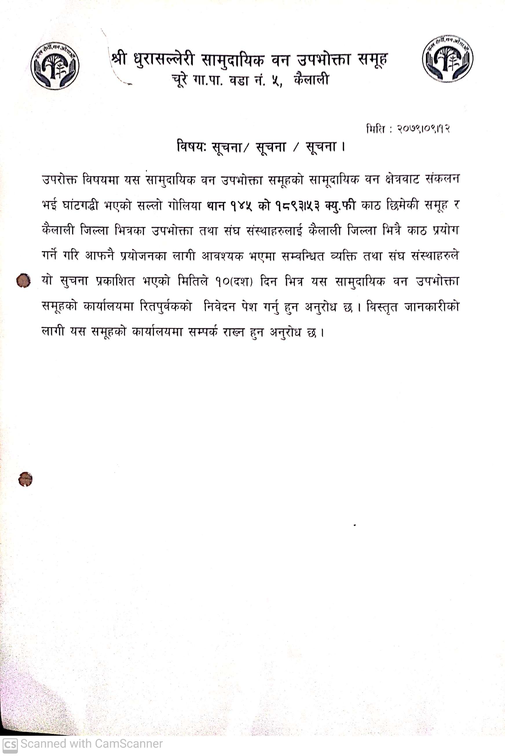 श्री सिद्ध भगवती सामुदायिक वन उपभोक्ता समूह गोदावरी कैलालीको सूचना ।