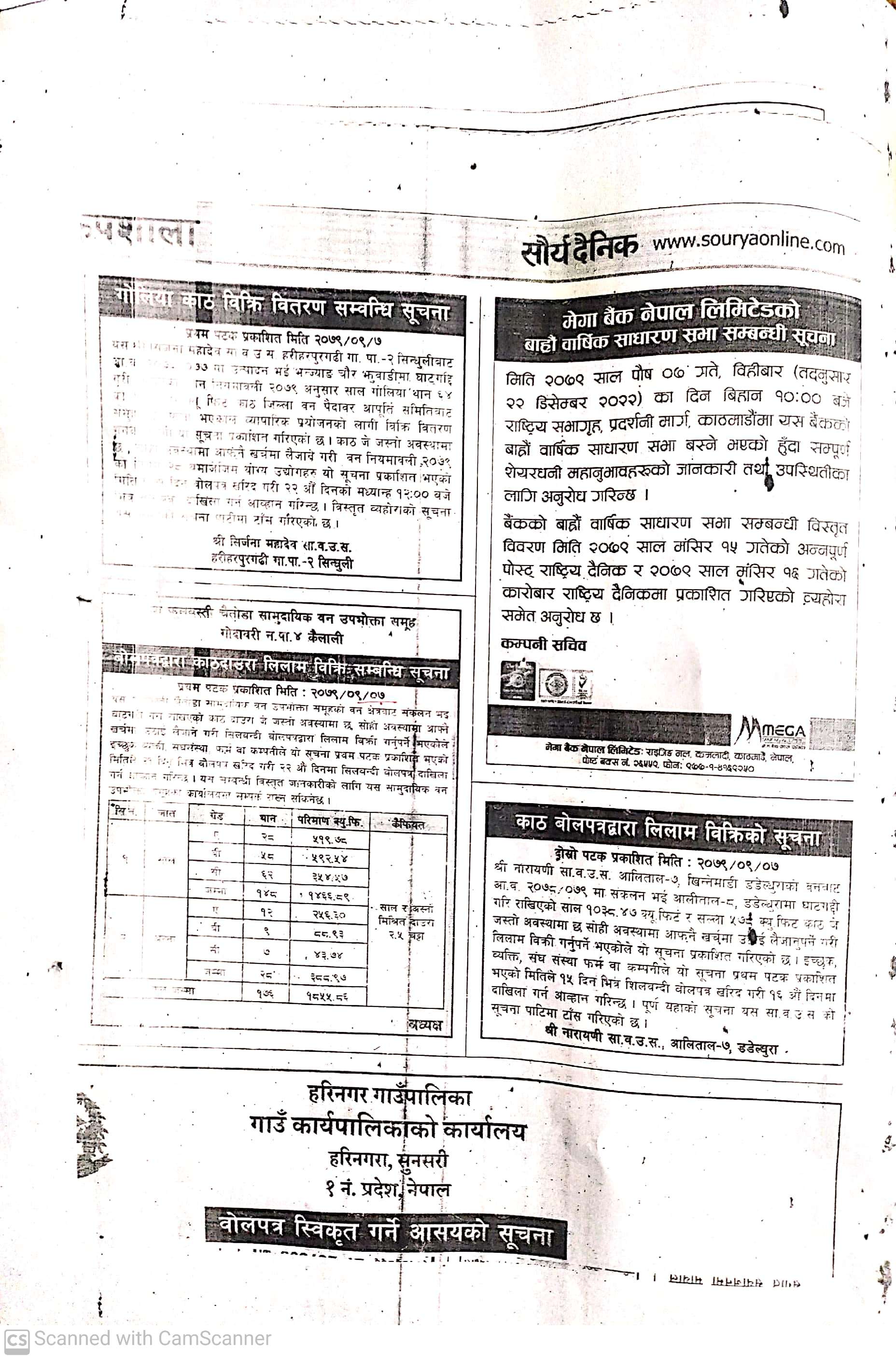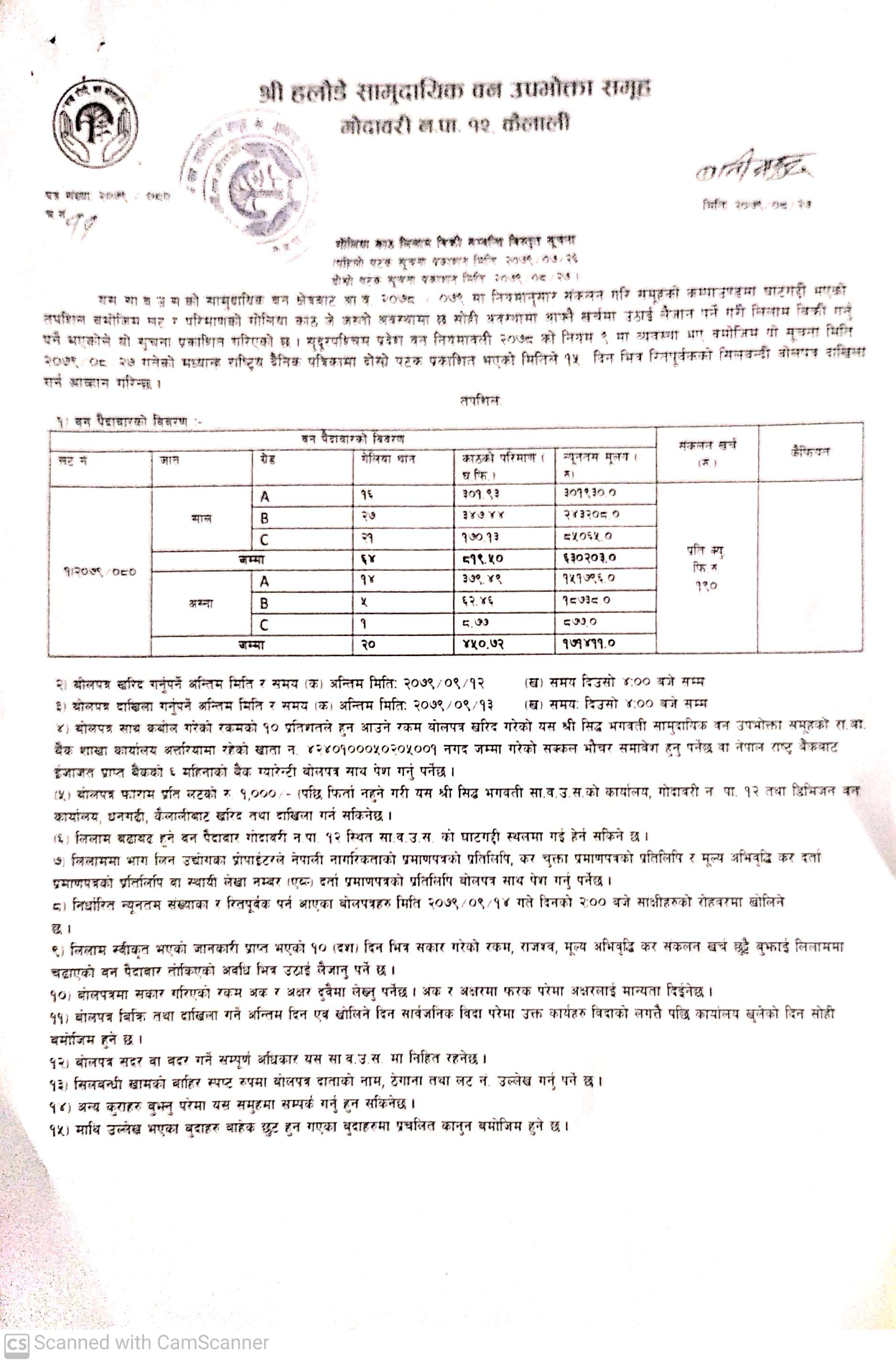 श्री हलौडे सामुदायिक वन उपभोक्ता समूह गोदावरी कैलालीको सूचना ।