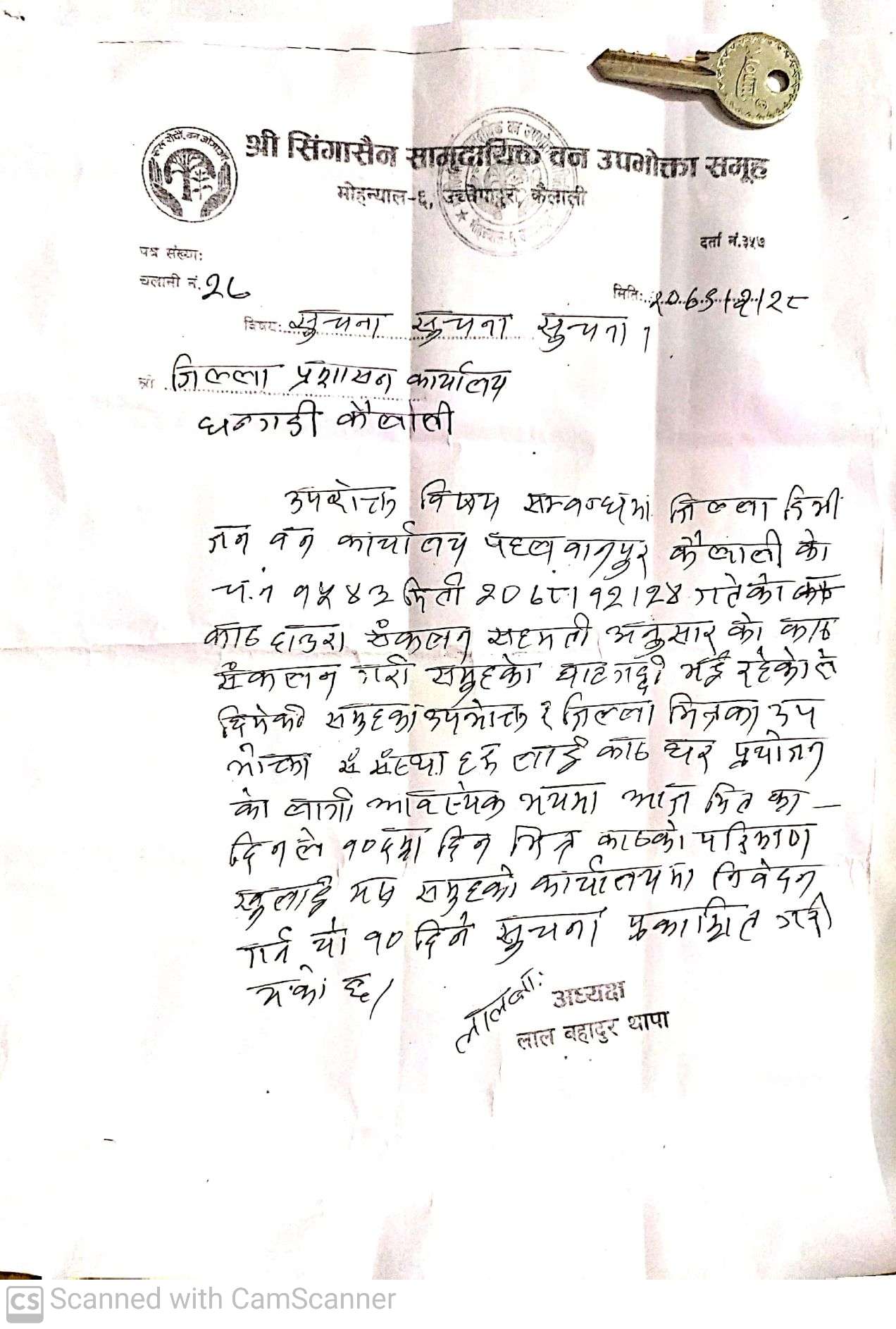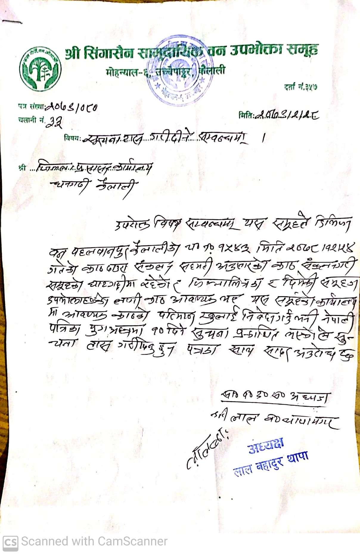श्री कर्णाली सामुदायिक वन उपभोक्ता समूह, मोहन्याल कैलालीको सूचना ।