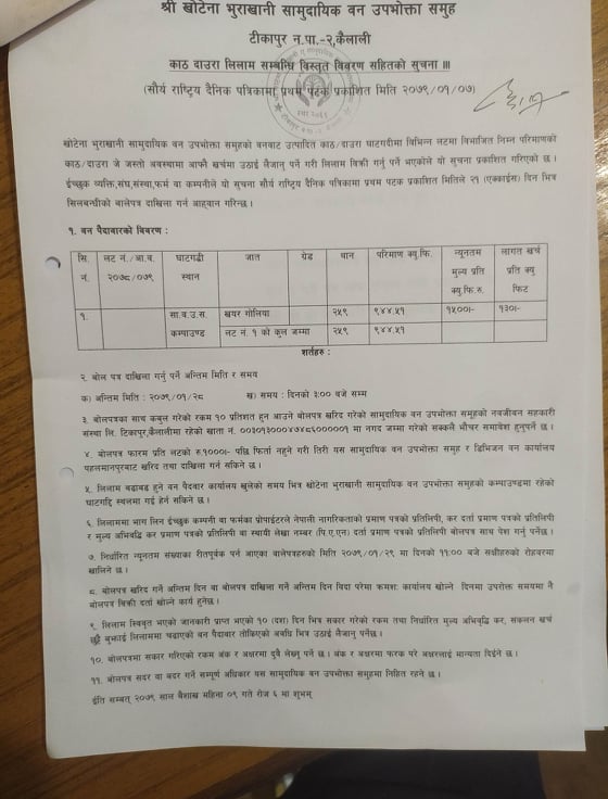 श्री खोटेना भुराखानी सामुदायिक वन उपभोक्ता समूह टीकापुर २ कैलालीको सूचना ।