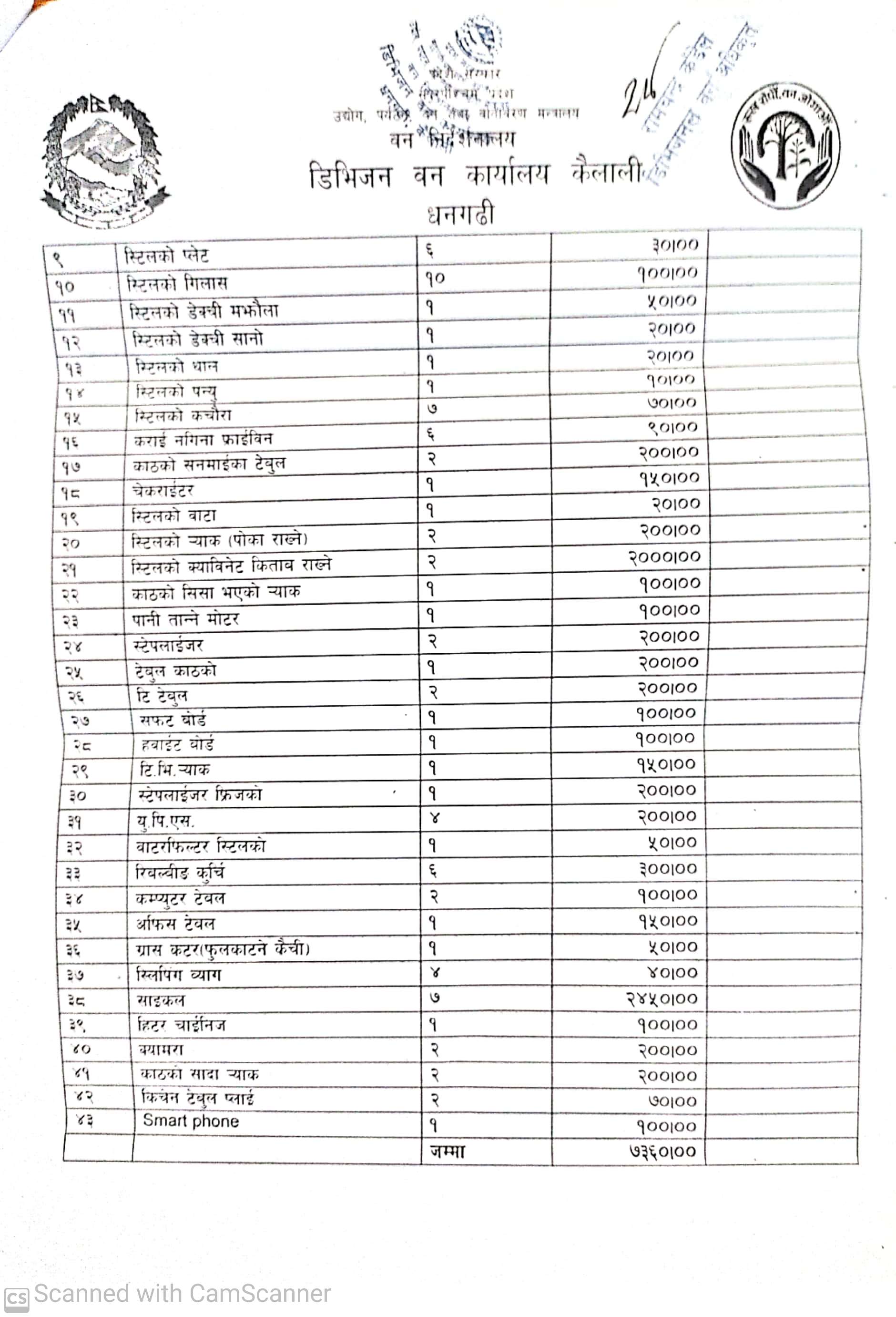 डिभिजन वन कार्यालय धनगढी कैलालीको लिलाम बिक्री सम्बन्धी सूचना ।
