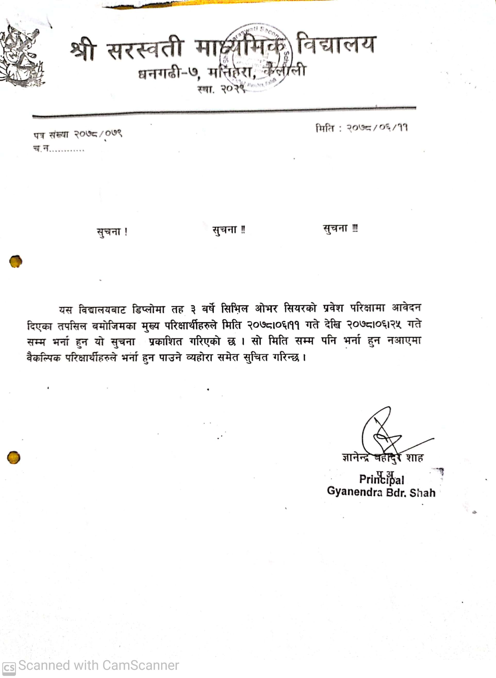 सरस्वती मा.बि.धनगढी मनहरा कैलालीको सूचना ।