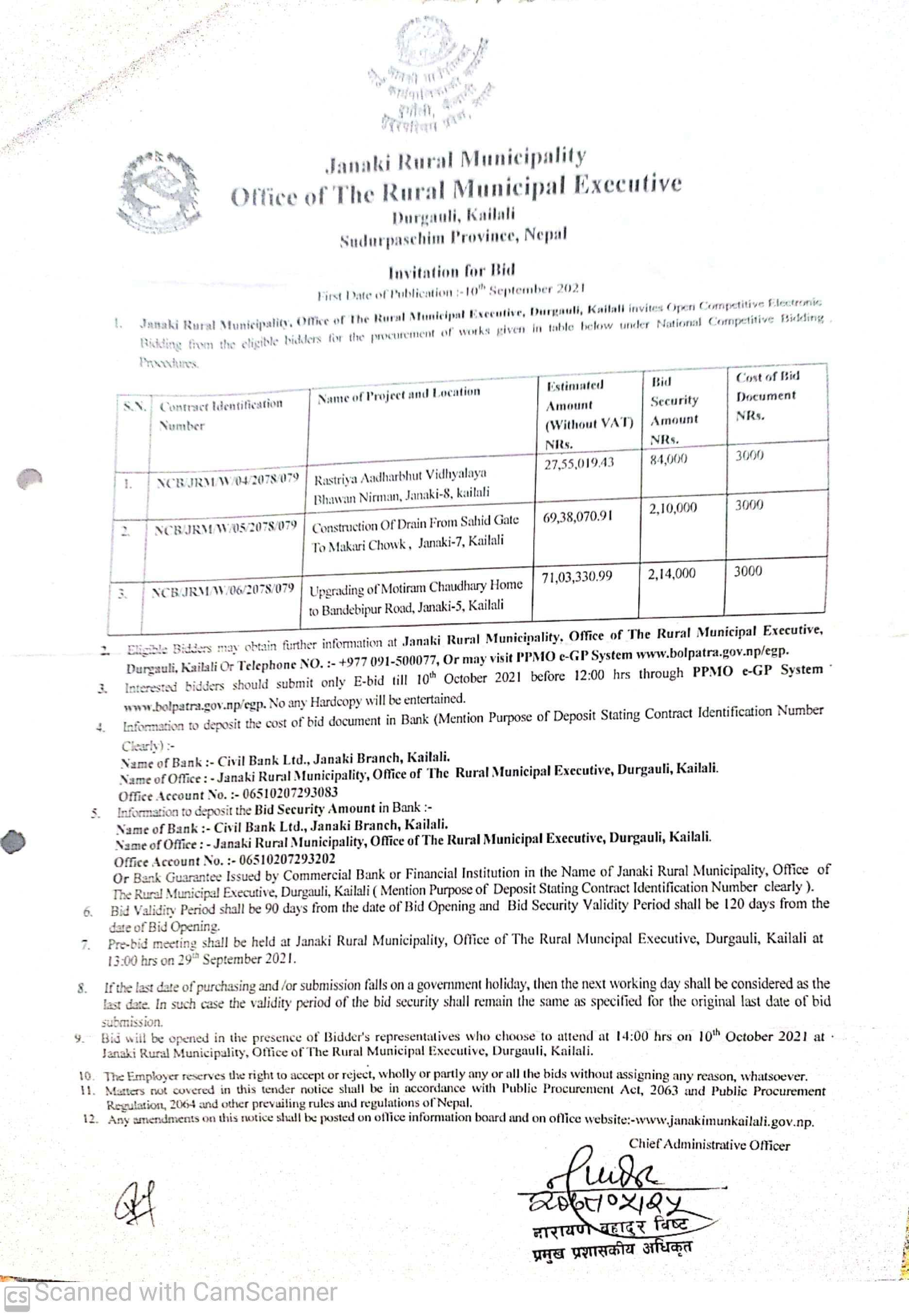 जानकी गाउँपालिका कैलालीको Invitation for Bid सम्बन्धी सूचना ।