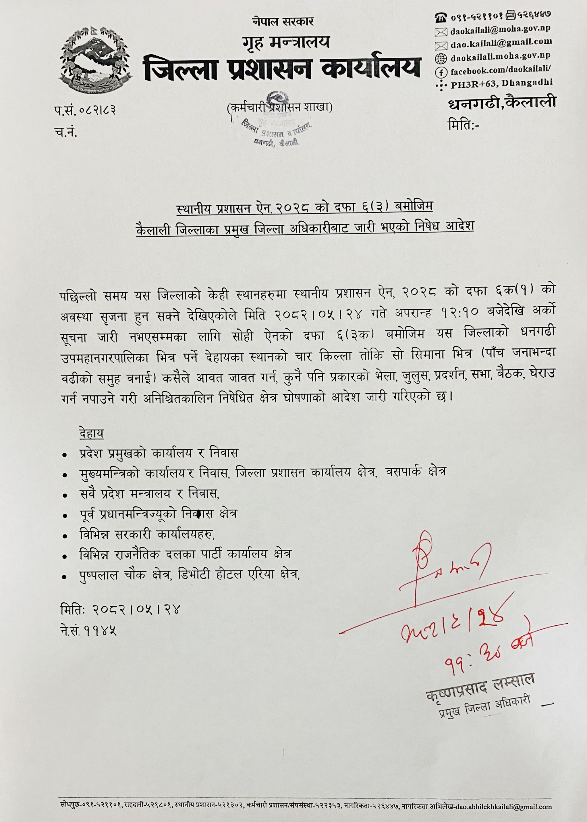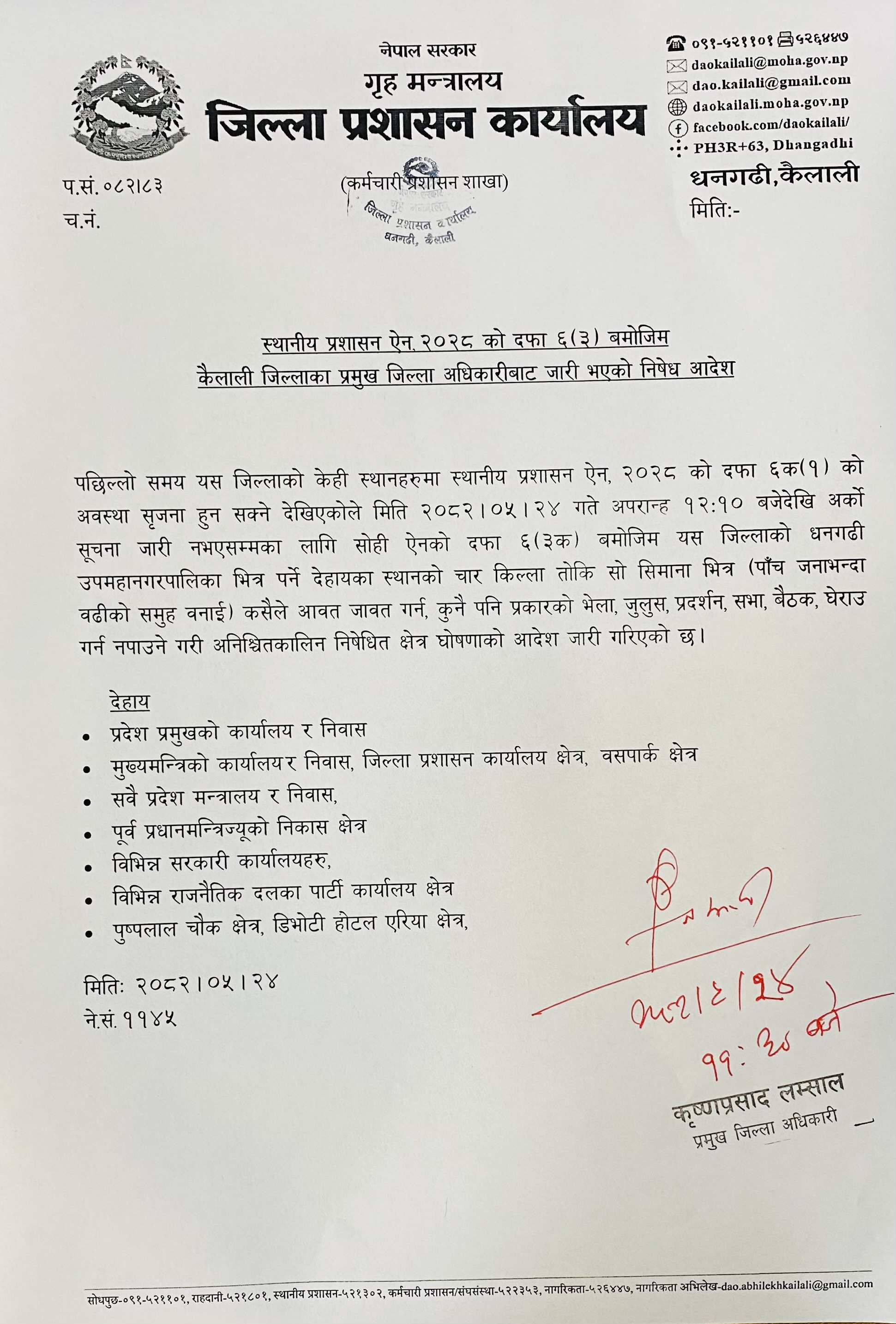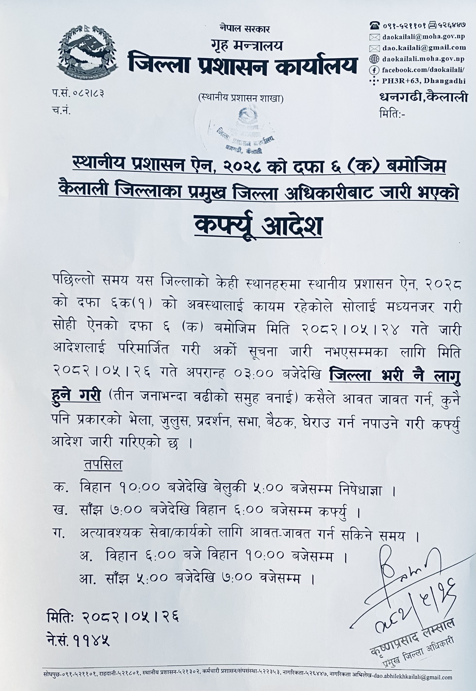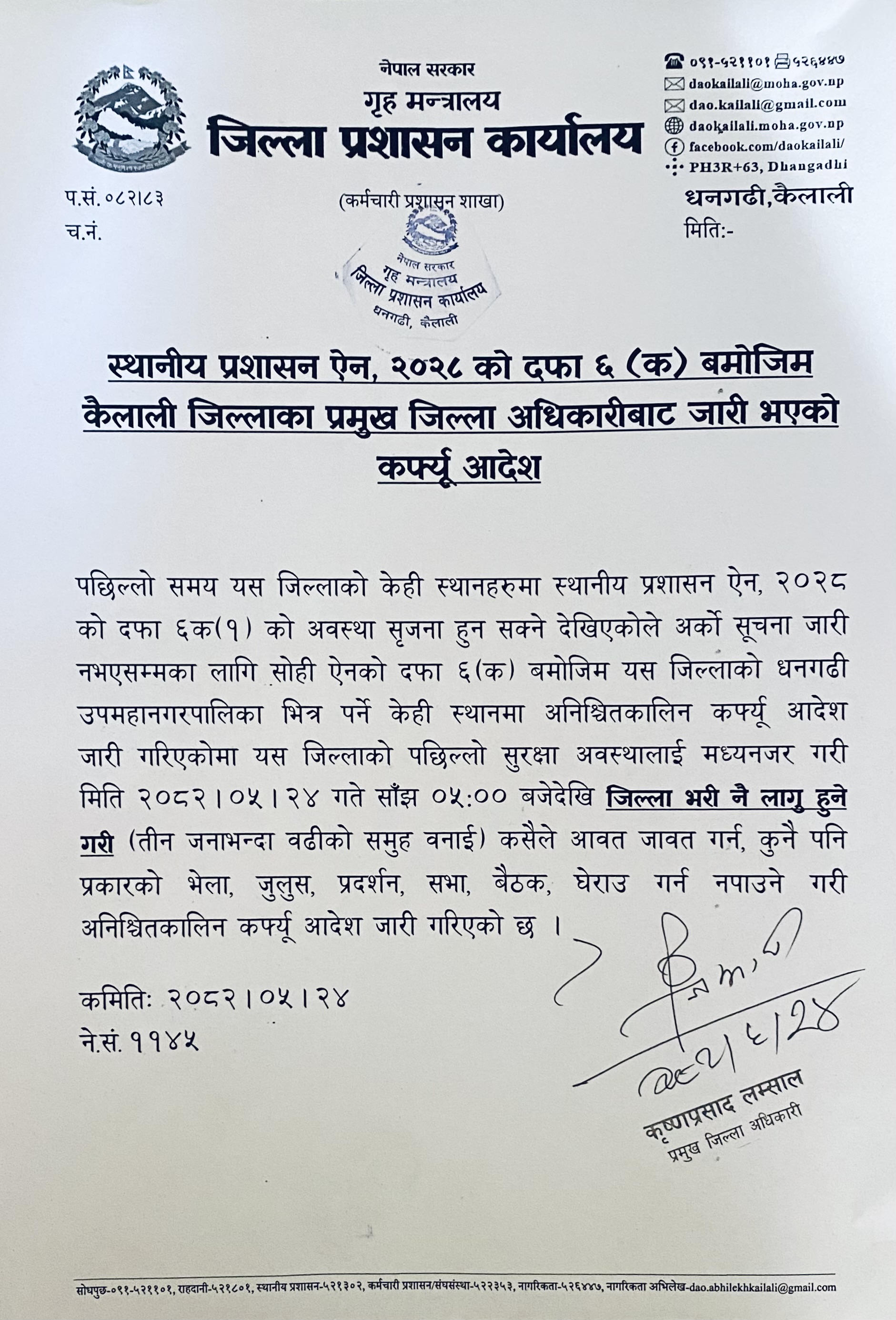 अर्को आदेश नभएसम्म कैलाली जिल्ला भरी कर्फ्यु जारी