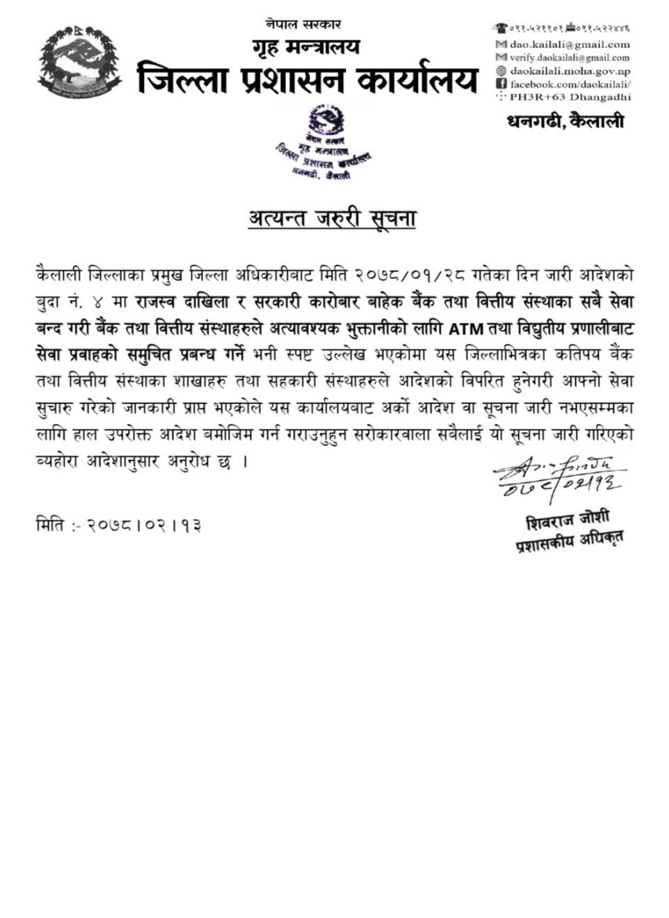 © सर्वाधिकार सुरक्षित जिल्ला प्रशासन कार्यालय,कैलाली