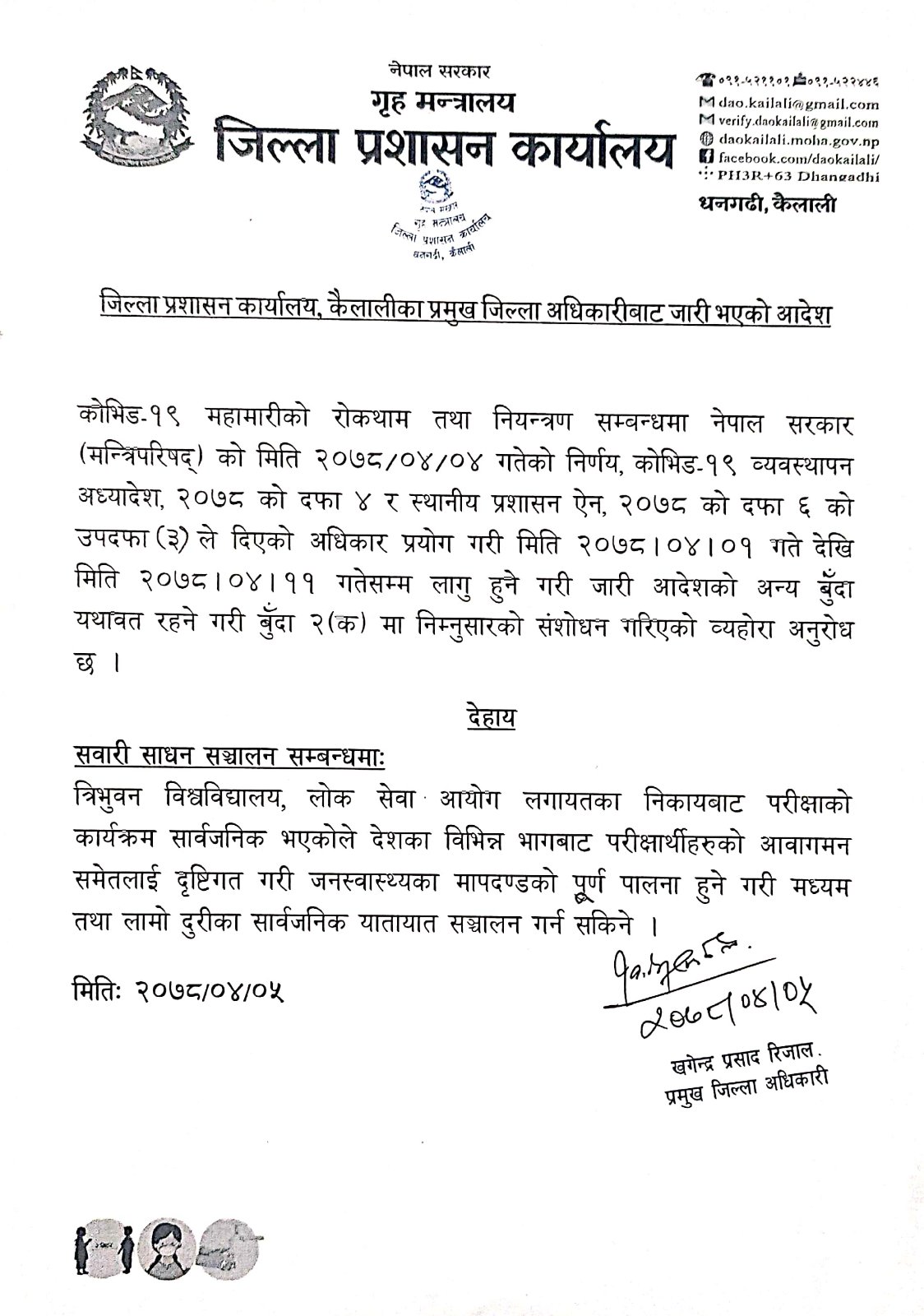 श्रीमान् प्र.जि.अ.ज्यूबाट मिति २०७७।१२।११ गते जारी आदेश