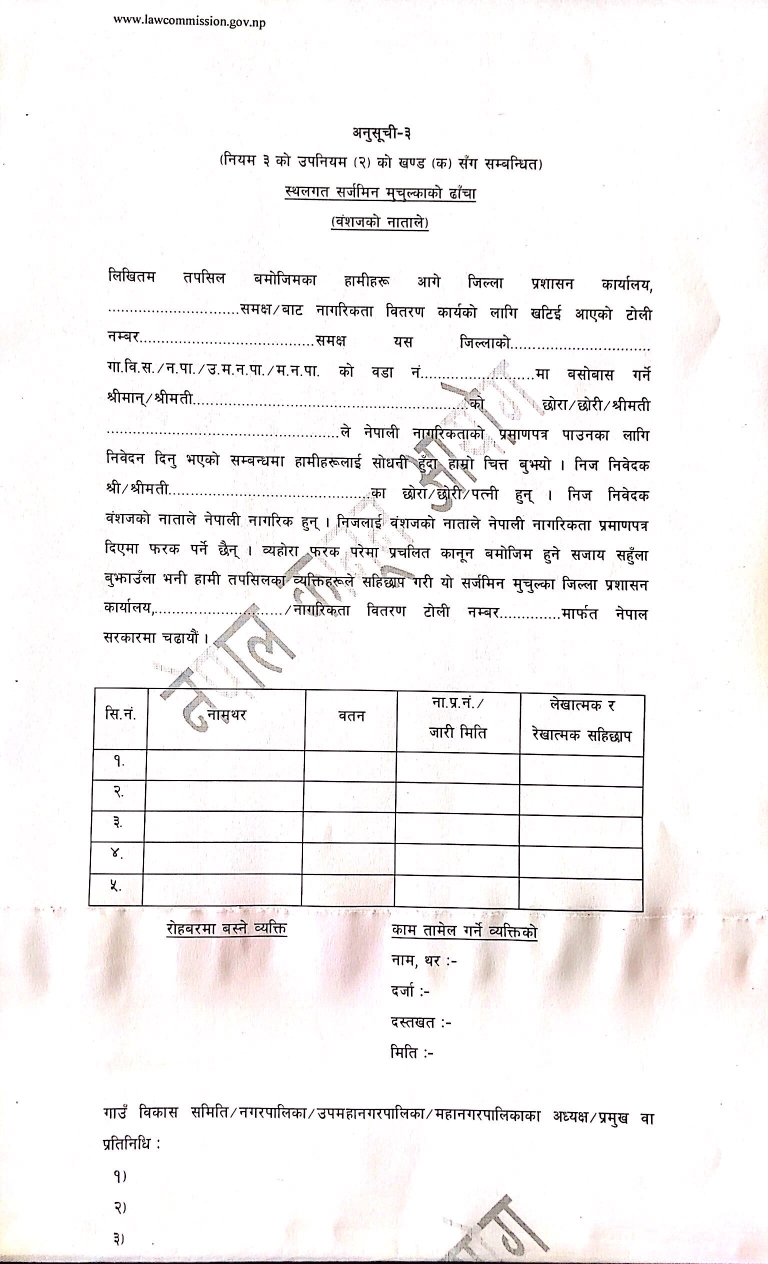अनुसूची-३ (स्थलगत सर्जमिन मुचुल्काको ढाँचा)