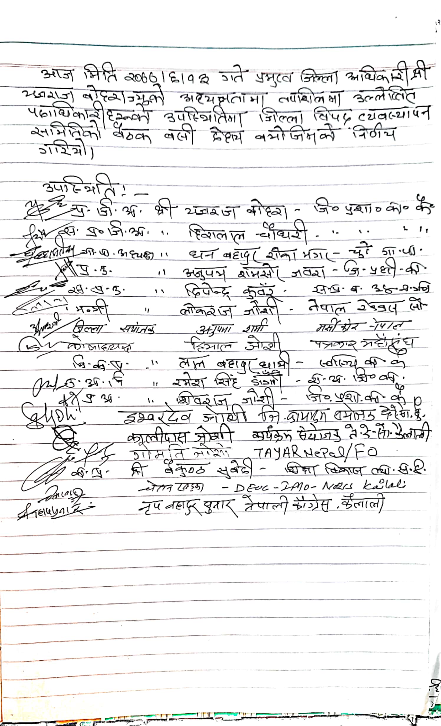 (DDMC) जिल्ला विपद् व्यवस्थापन समितिको निर्णय