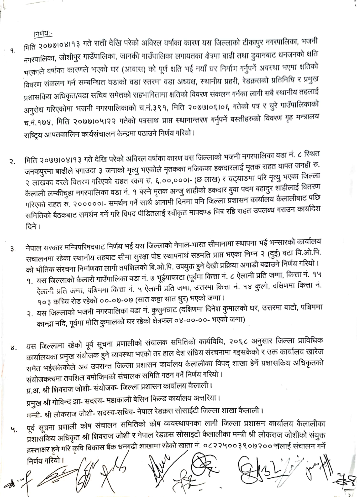 जिल्ला विपद् व्यवस्थापन समितिको निर्णय