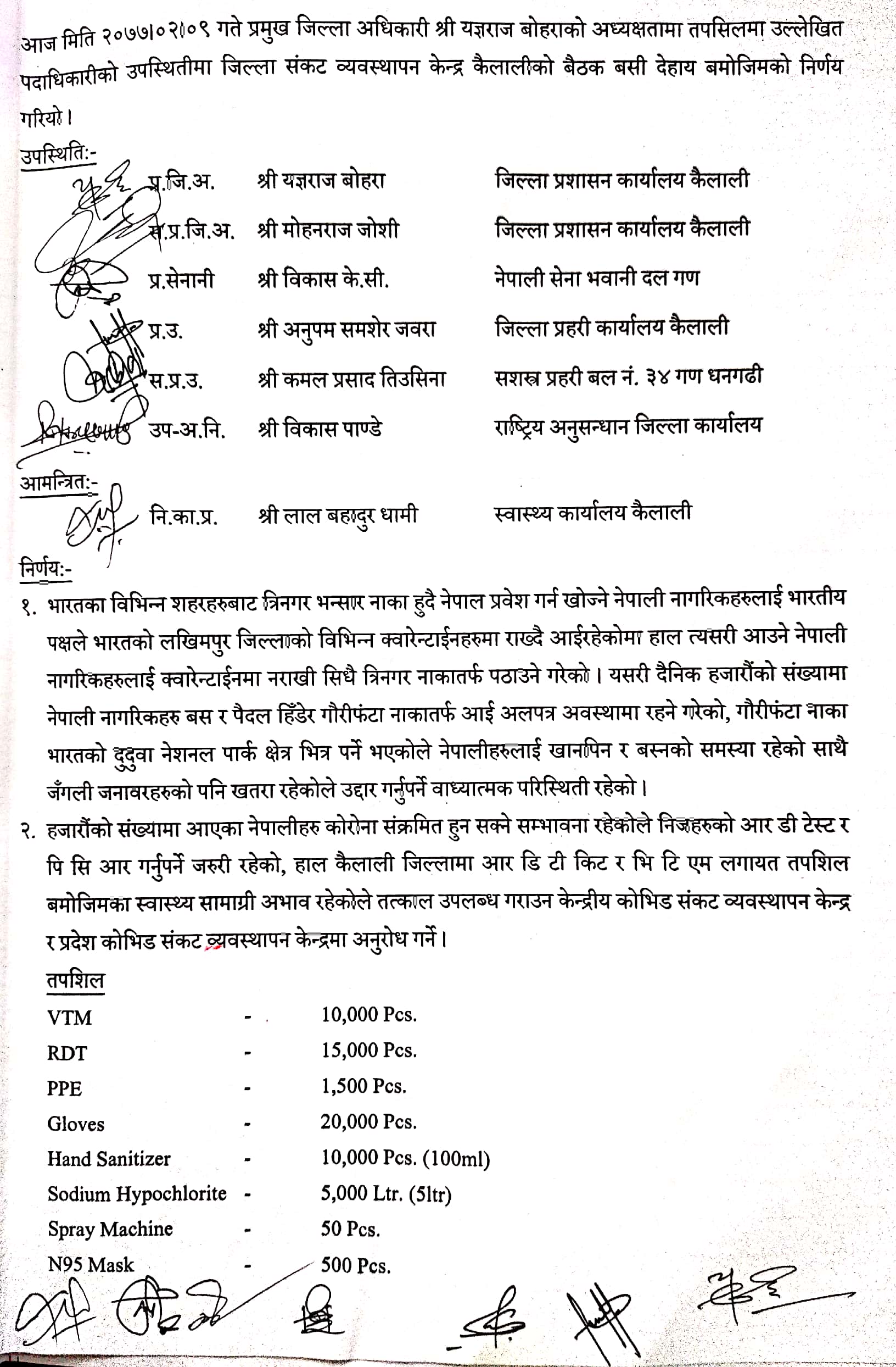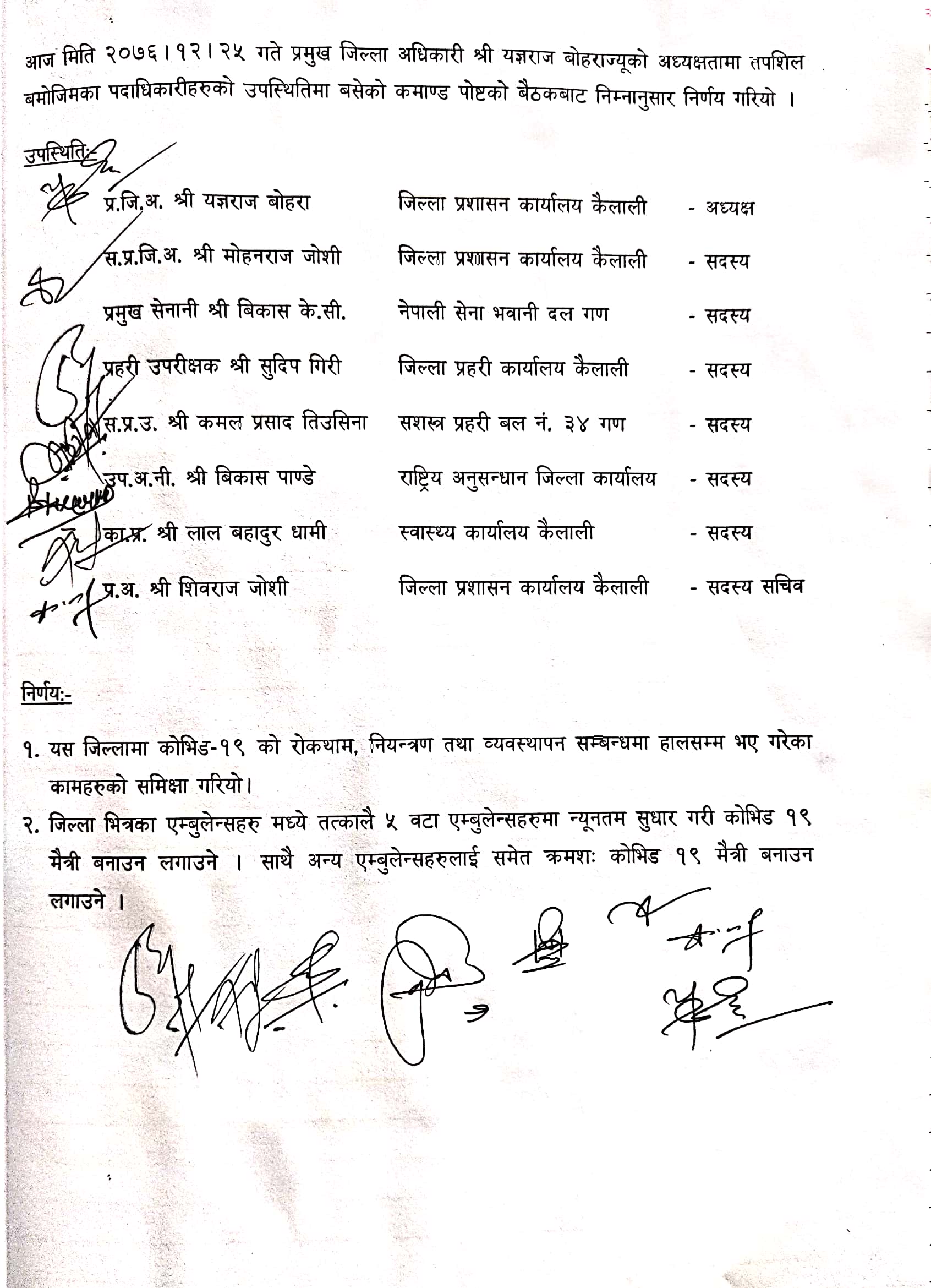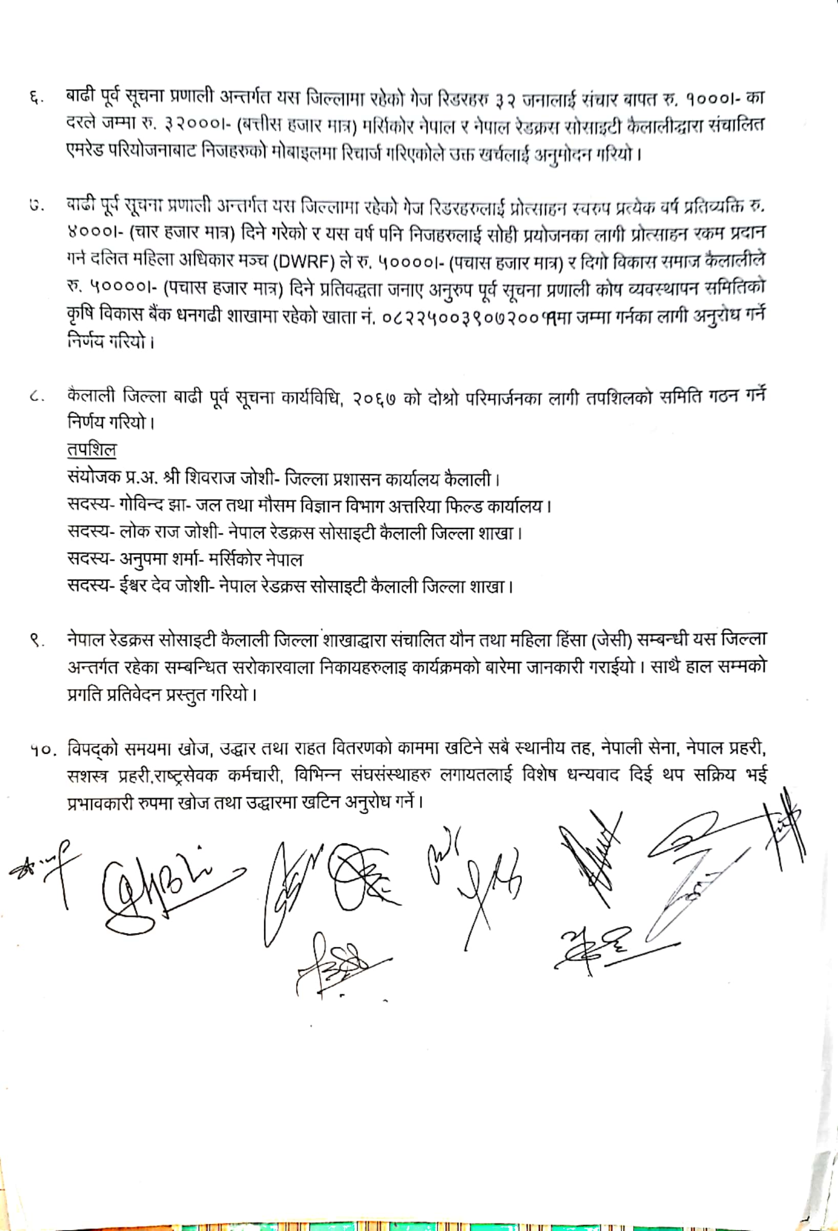 जिल्ला विपद व्यवस्थापन समितिको निर्णय