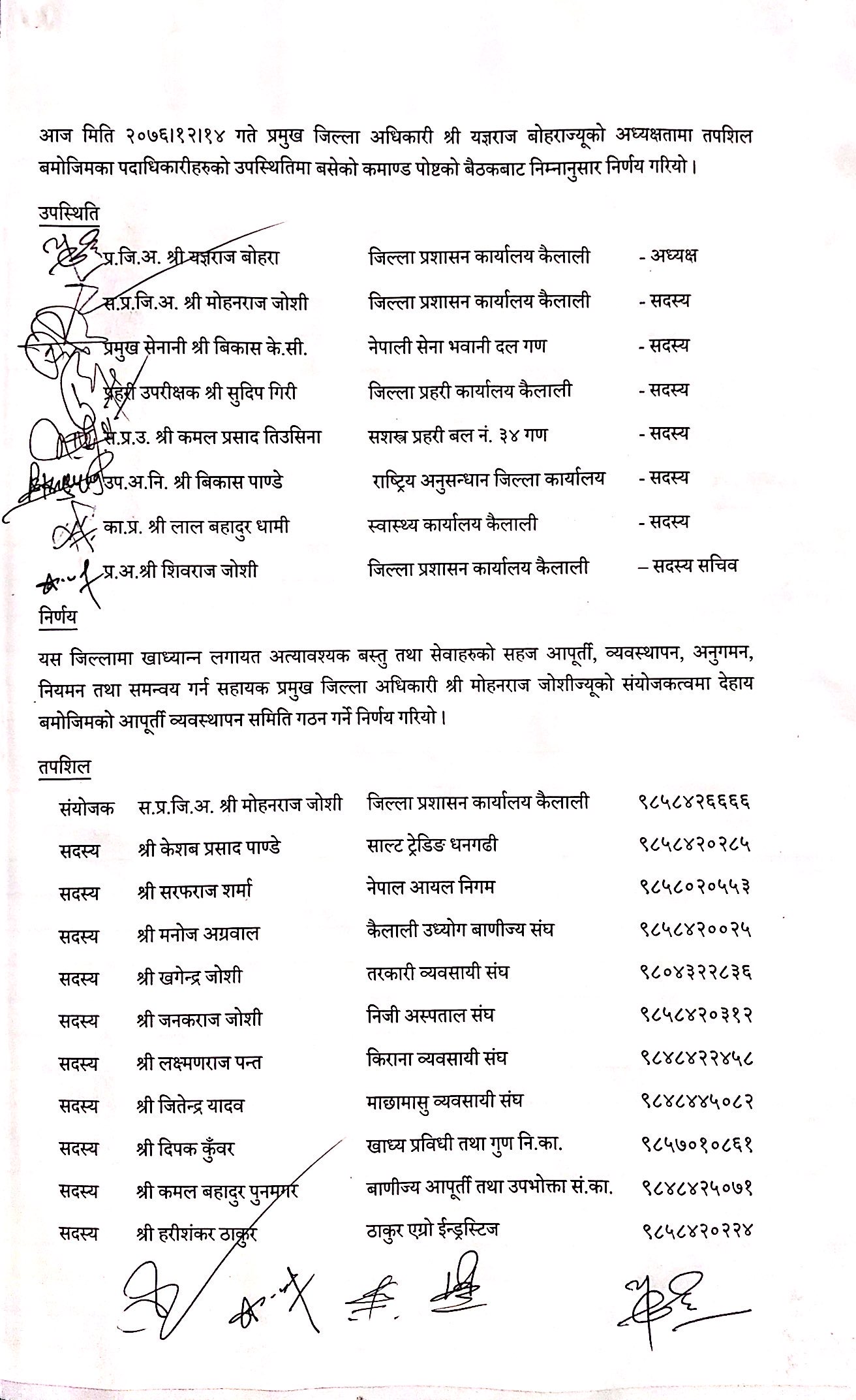 जिल्ला विपद व्यवस्थापन समितिको निर्णय