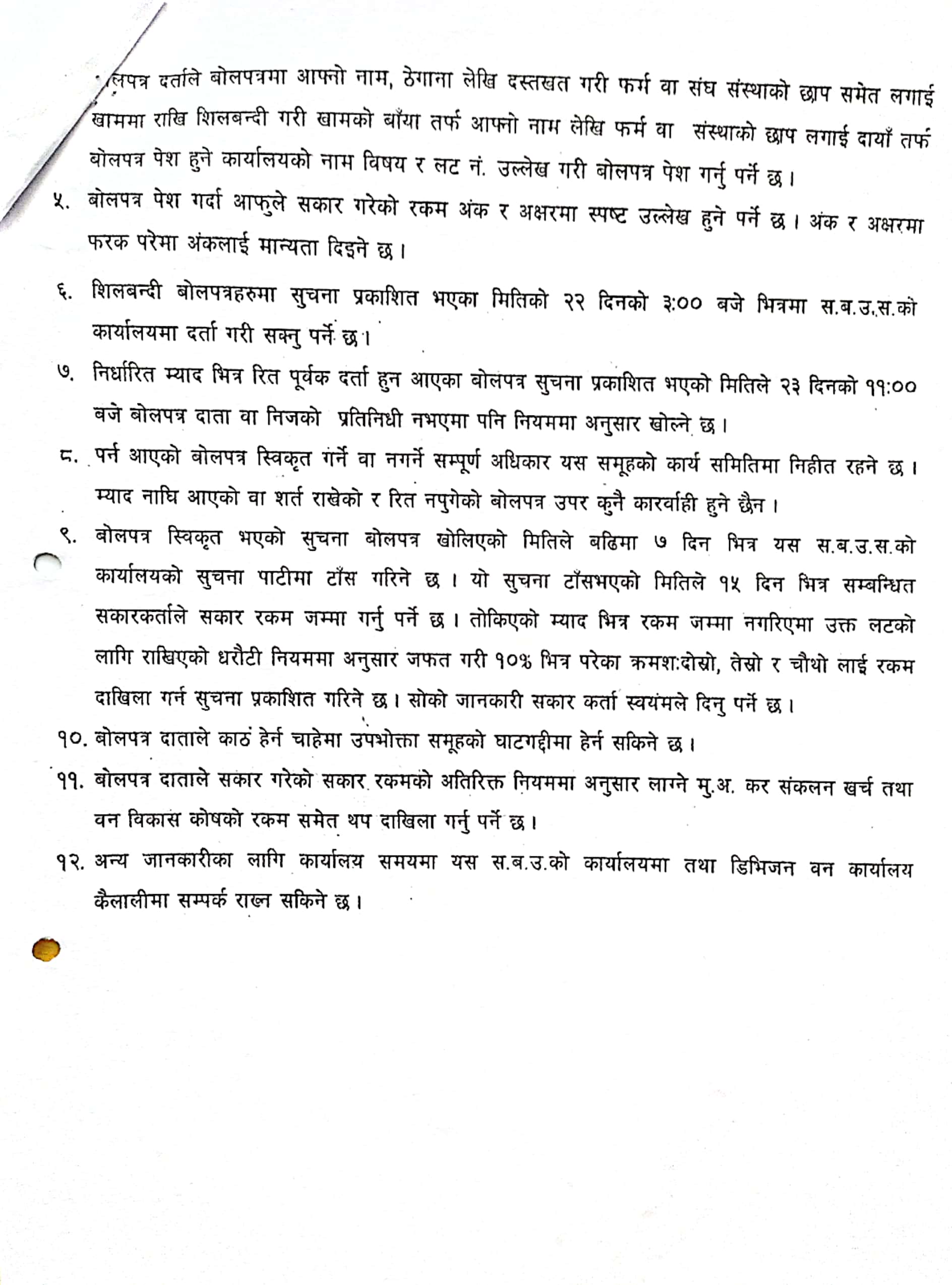 सिद्ध सालवाटा ब.उ.स.चुरे कैलालीको काठ लिलाम बिक्री सम्बन्धि सूचना ।