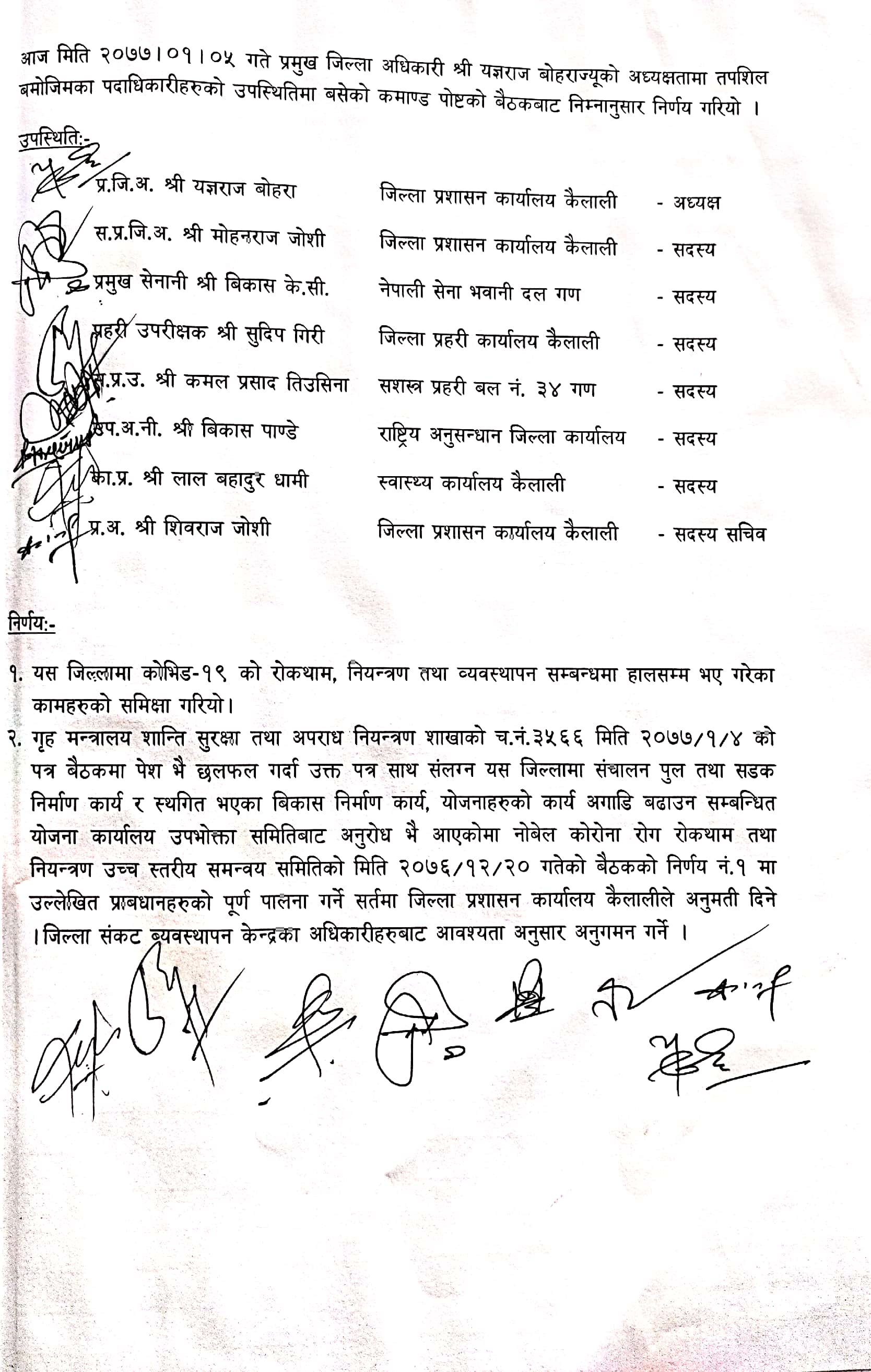 कमाण्ड पोष्ट निर्णय २०७७।०१।०५