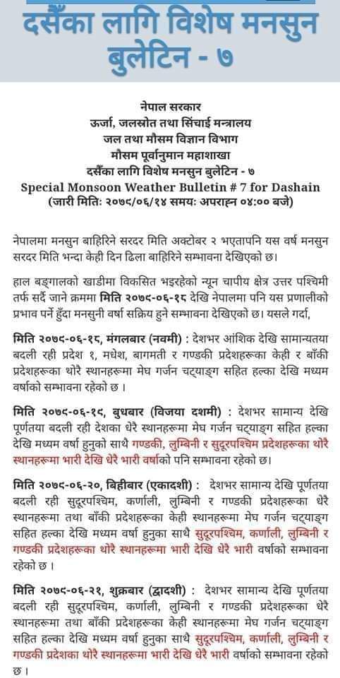 बाढी पूर्वअनुमान बुलेटिन (दशै विेशेष)