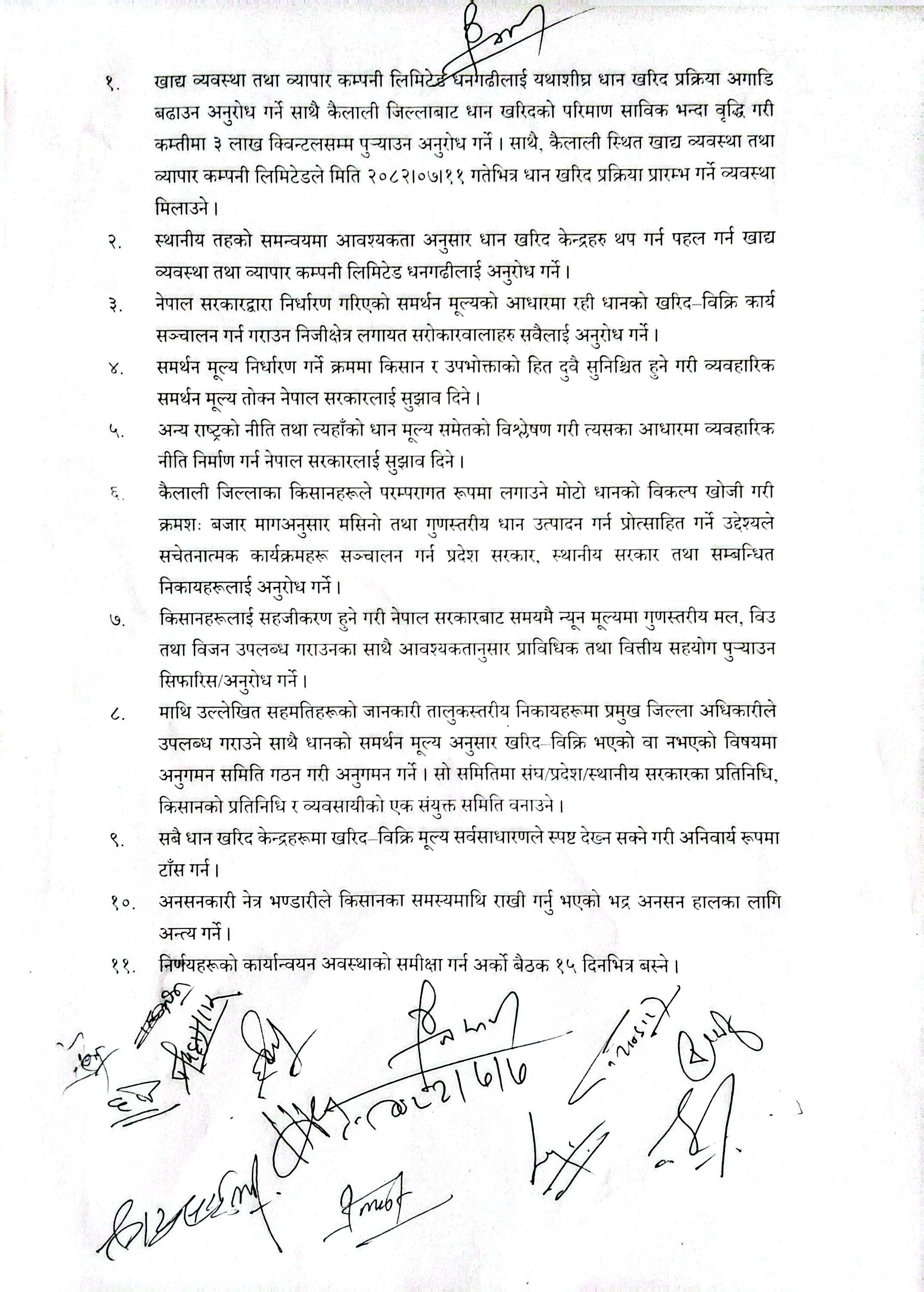 समर्थन मूल्य कार्यान्वयन सम्बन्धि निर्णय