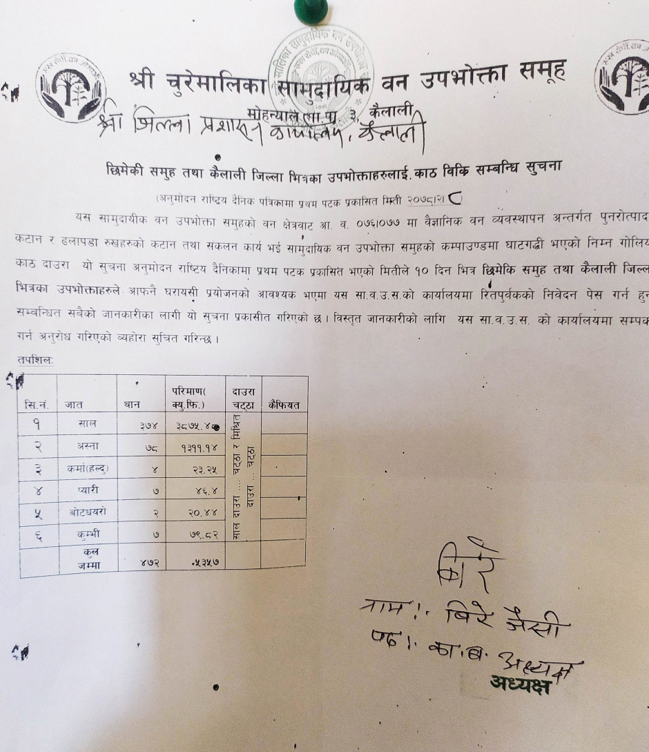 चुरेमालिका सामुदायिक बन उपभोक्ता समूहको सूचना