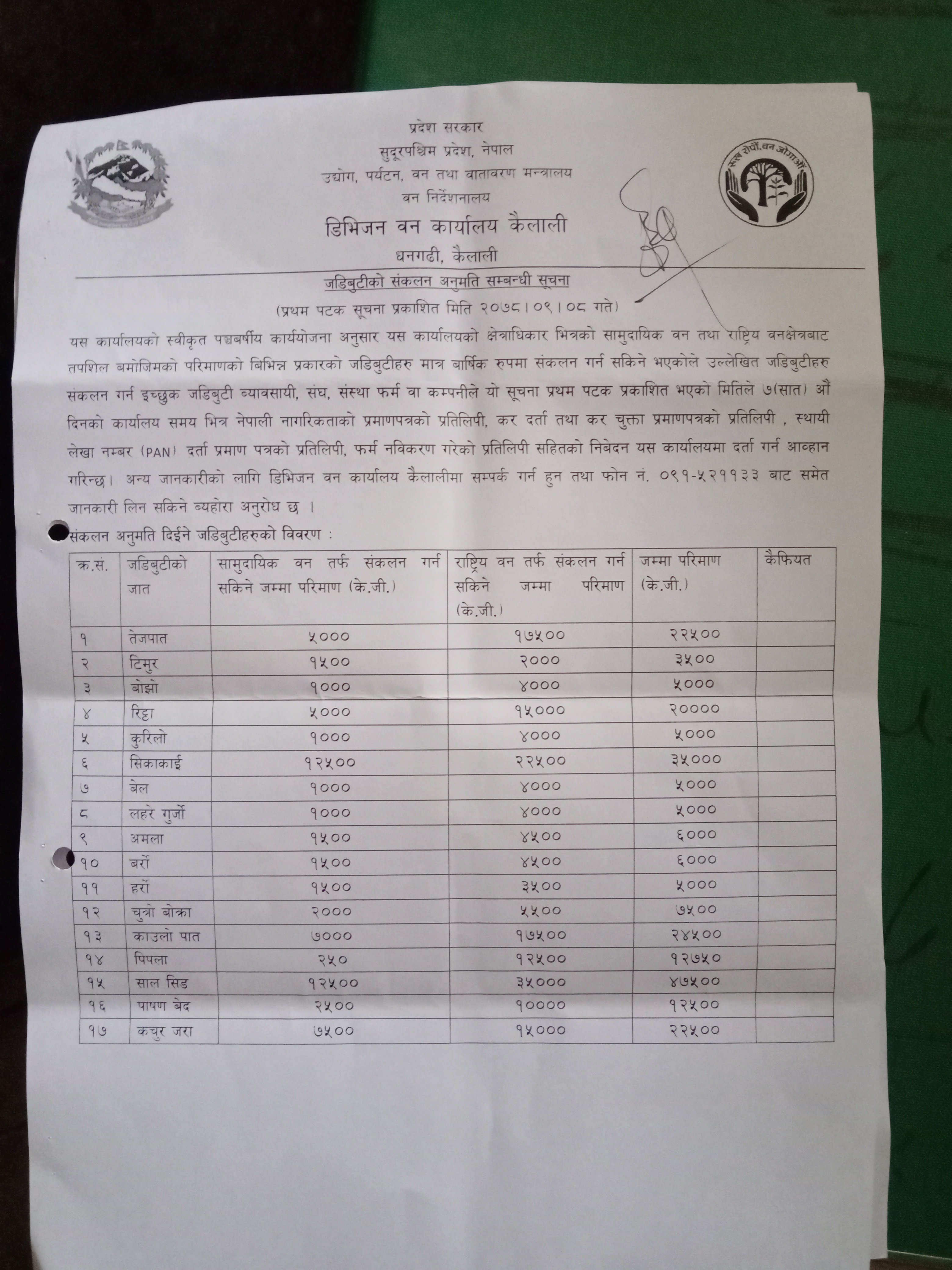 डिभिजन बन कार्यालय धनगढी कैलालीको सूचना । थान 2