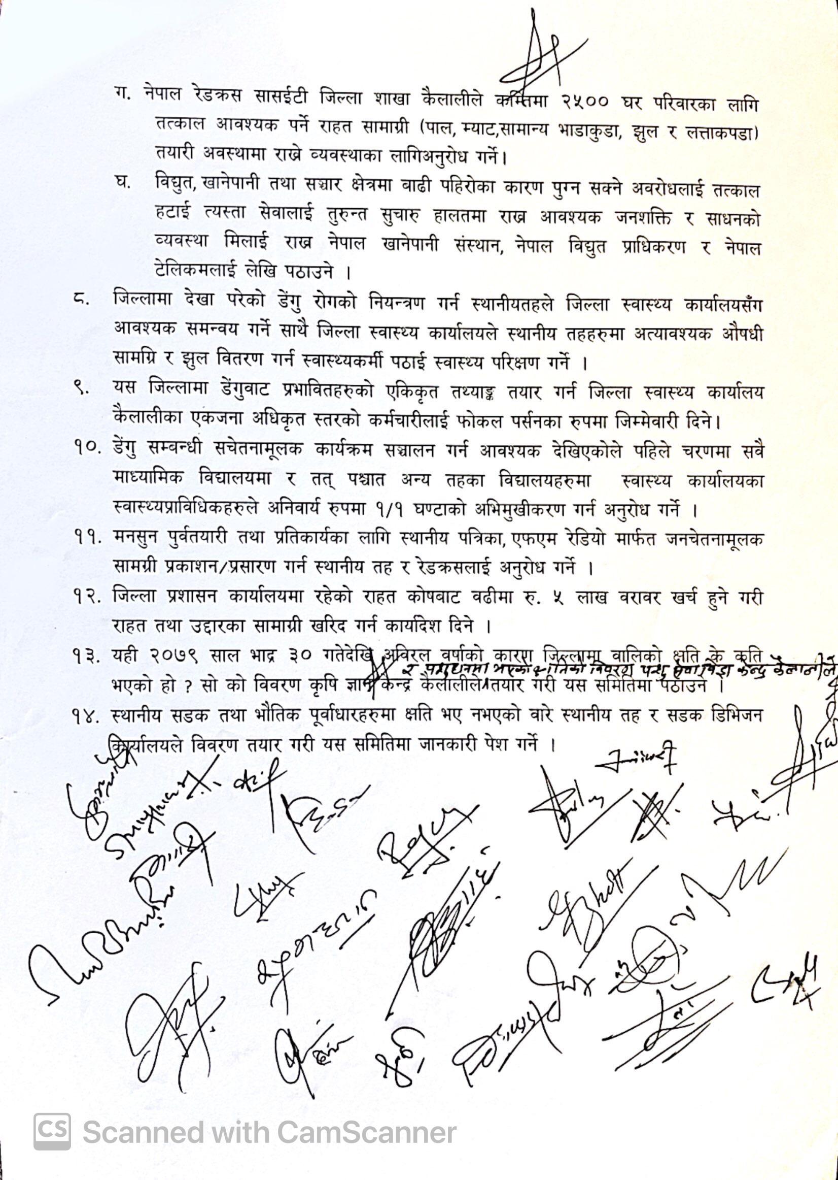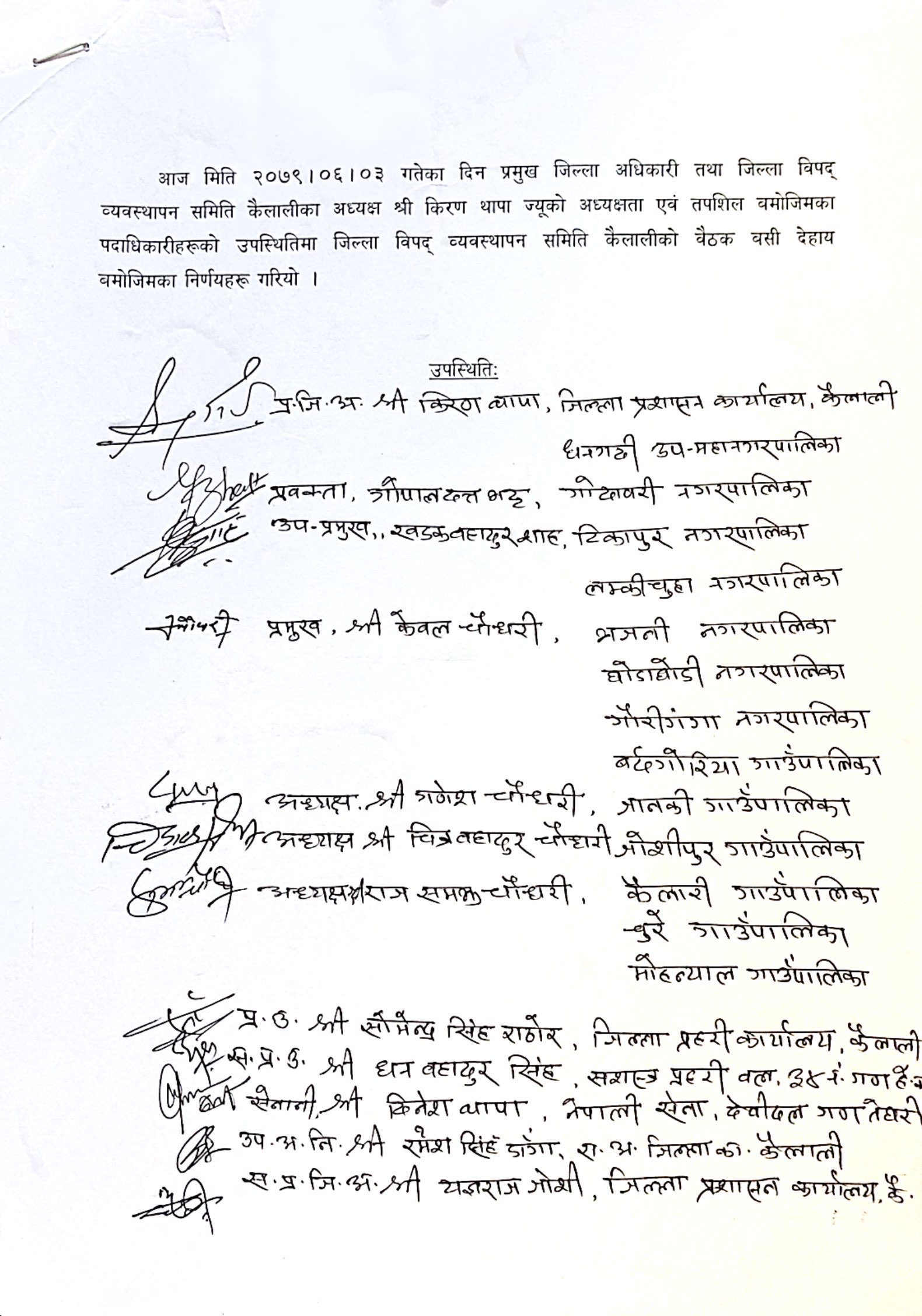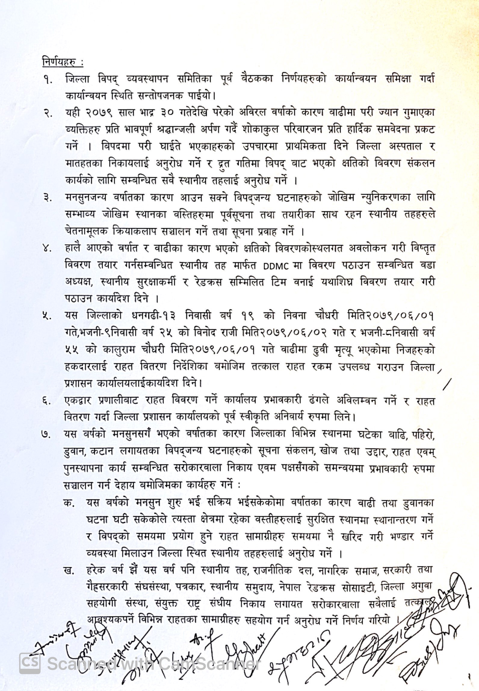 जिल्ला विपद व्यवस्थापन समितिको निर्णय