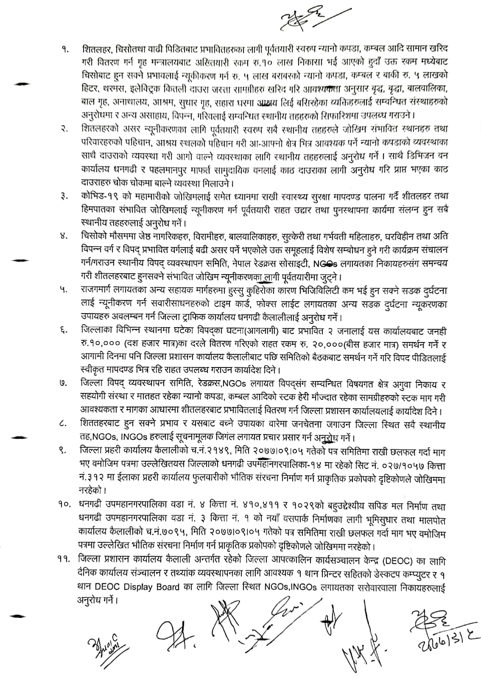 जिल्ला विपद् व्यवस्थापन समितिको निर्णय