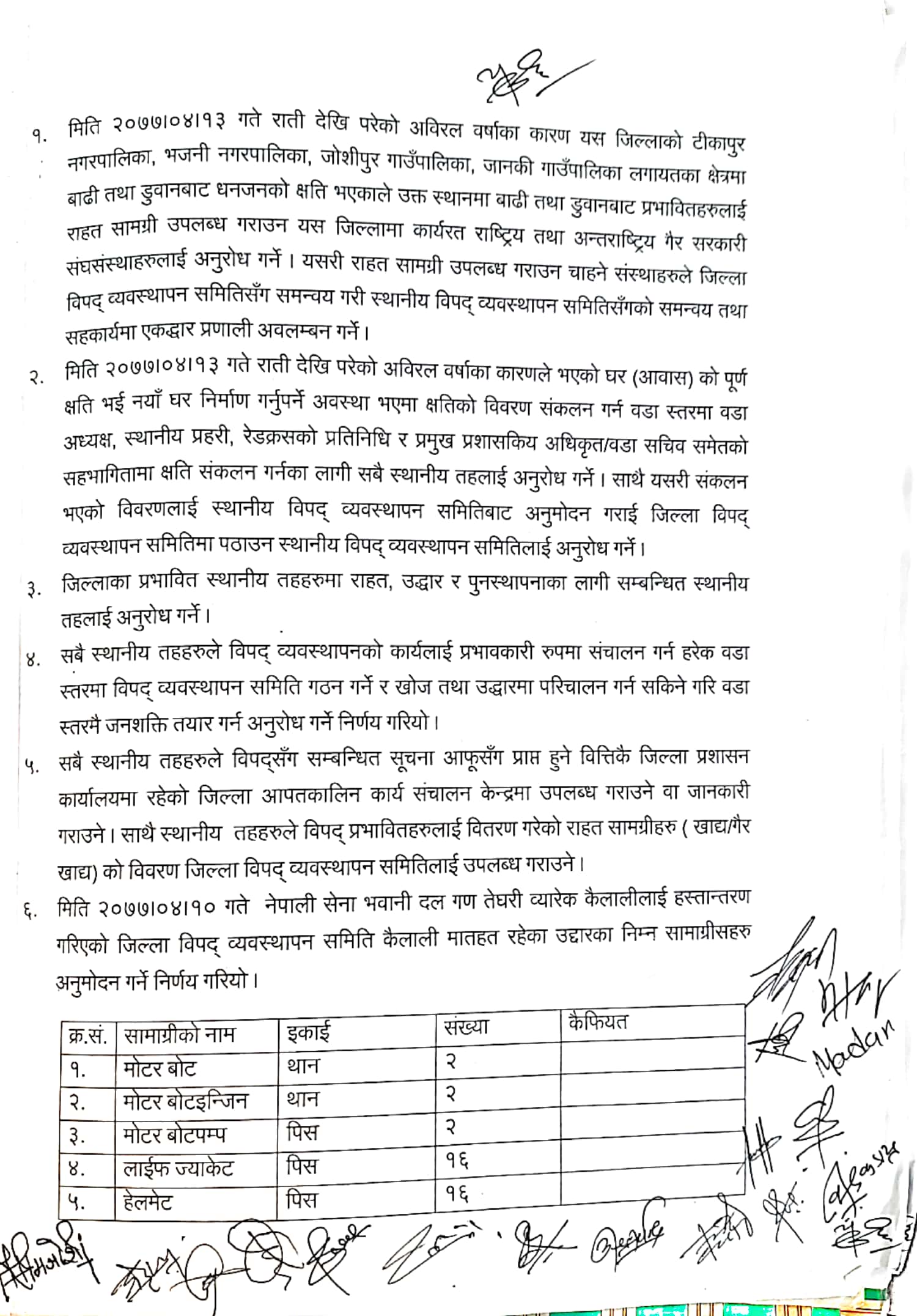 जिल्ला विपद् व्यवस्थापन समितिको निर्णय