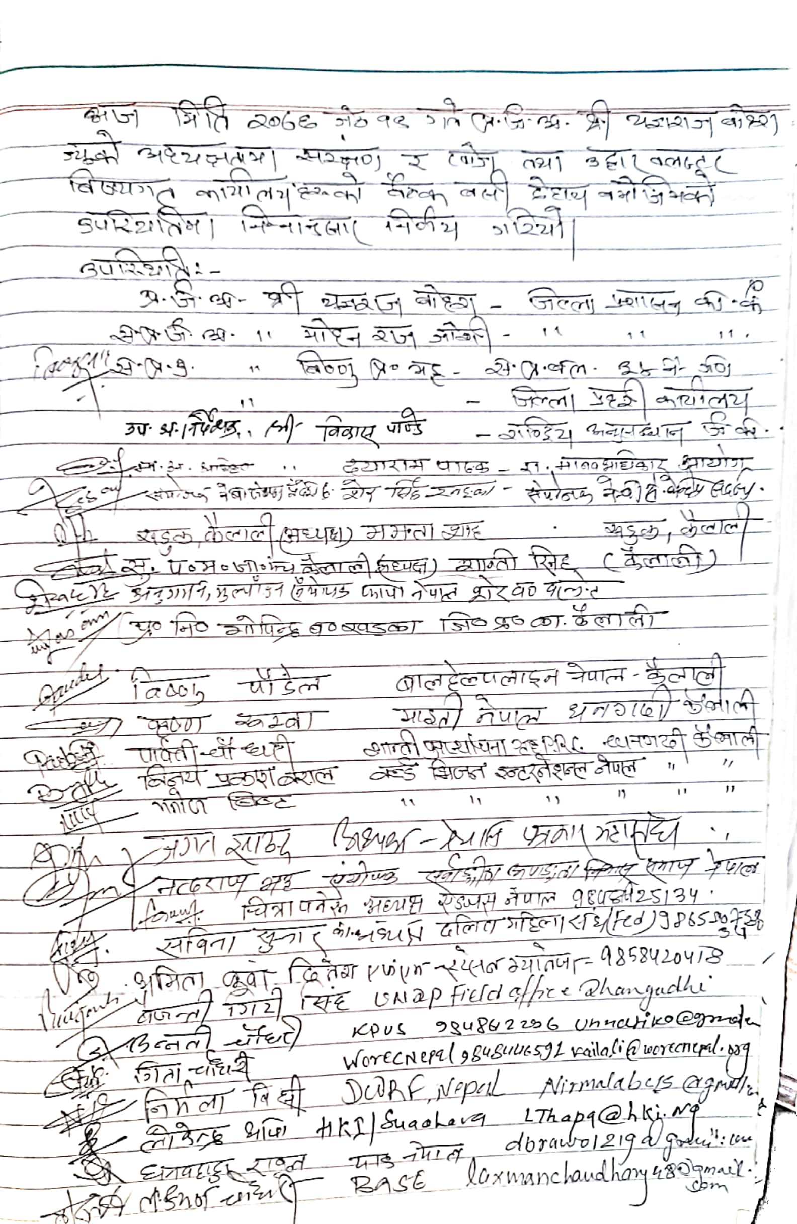 गेज रिडरहरुको नाम र सम्पर्क नं.