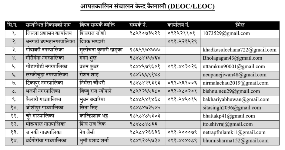 जन निर्वाचित पदाधिकारीहरुको नाम थर र सम्पर्क नं. (२०७९)