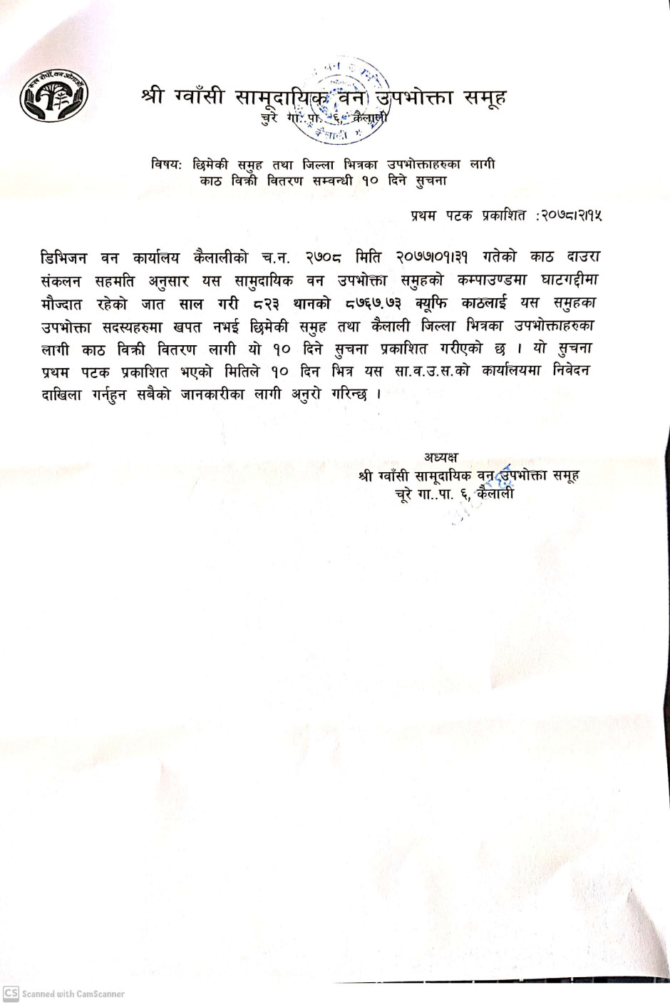 ग्वाँसी सामुदायिक वन उपभोक्ता समूहको सूचना