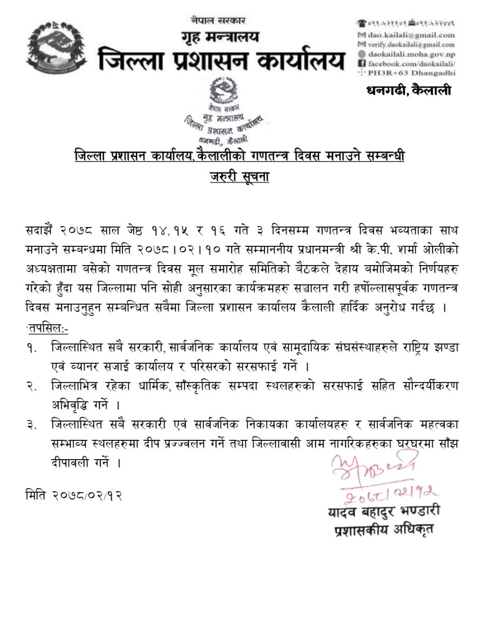 गणतन्त्र दिवस मनाउने सम्बन्धी सूचना