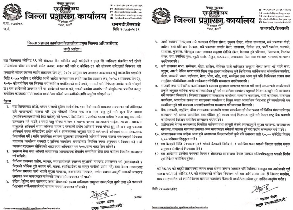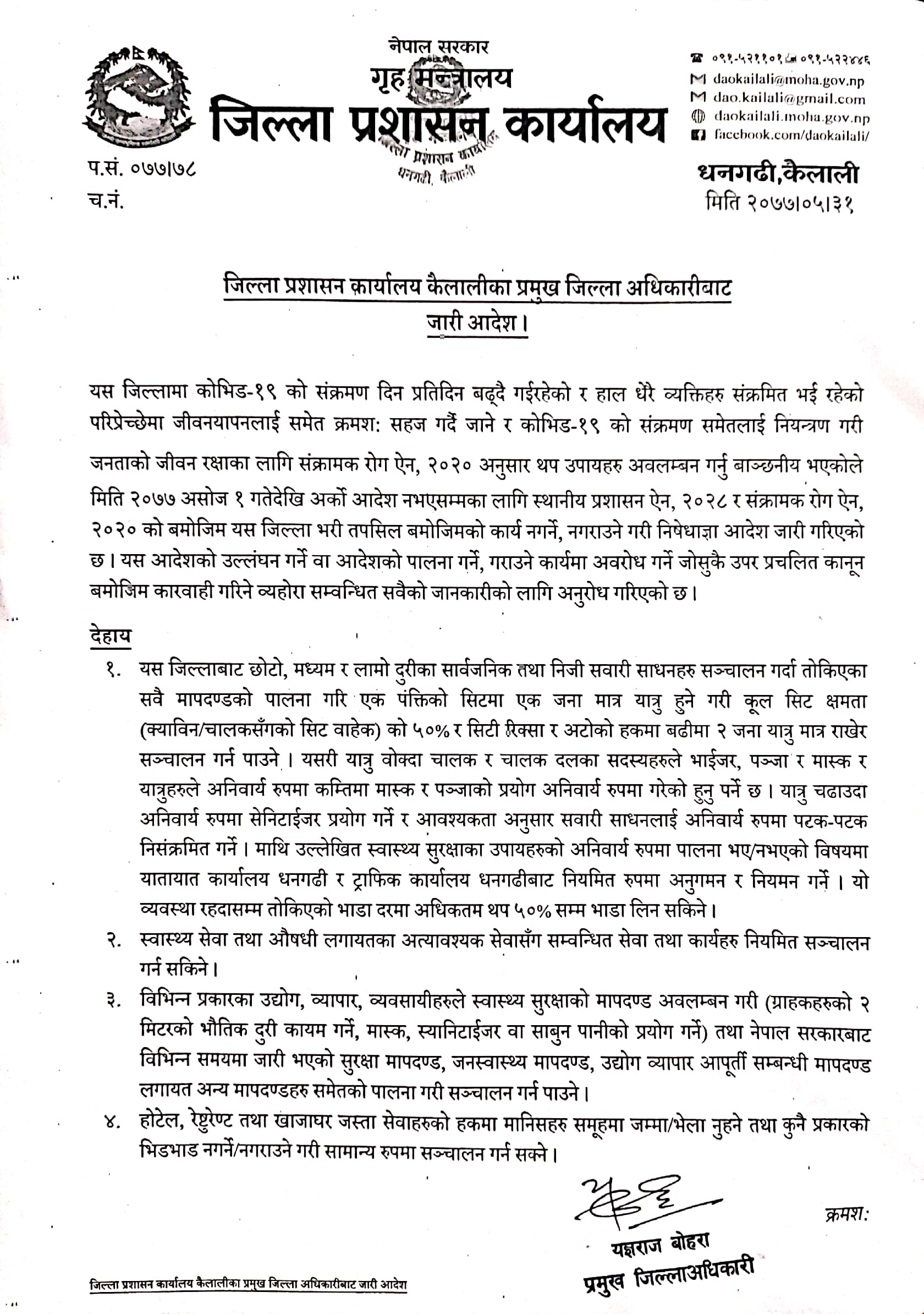 | २०७७।०५।३१ गते प्रमुख जिल्ला अधिकारीबाट जारी आदेश |