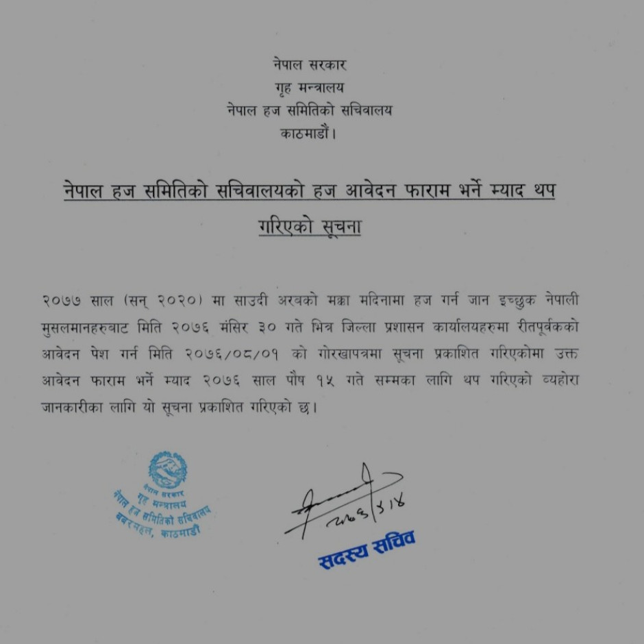 हज आवेदन भर्ने म्याद थप गरिएको सूचना