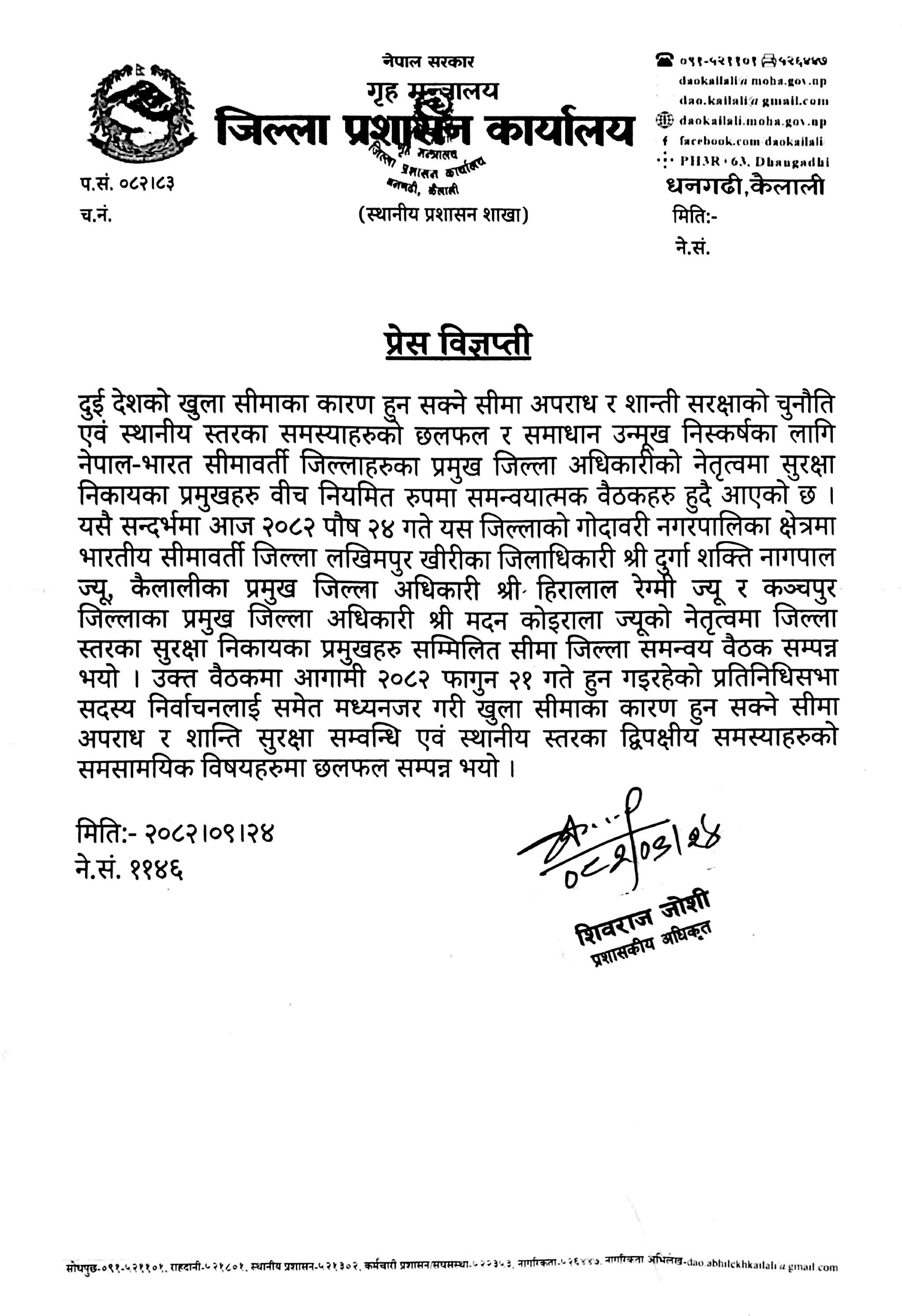प्रेस बिज्ञप्ति