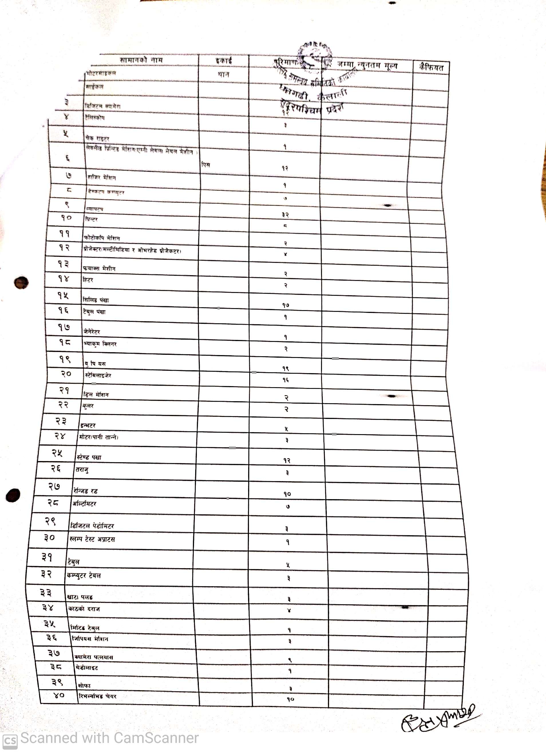 जिल्ला समन्वय समितिको कार्यालय धनगढीको लिलाम सम्बन्धी सूचना ।