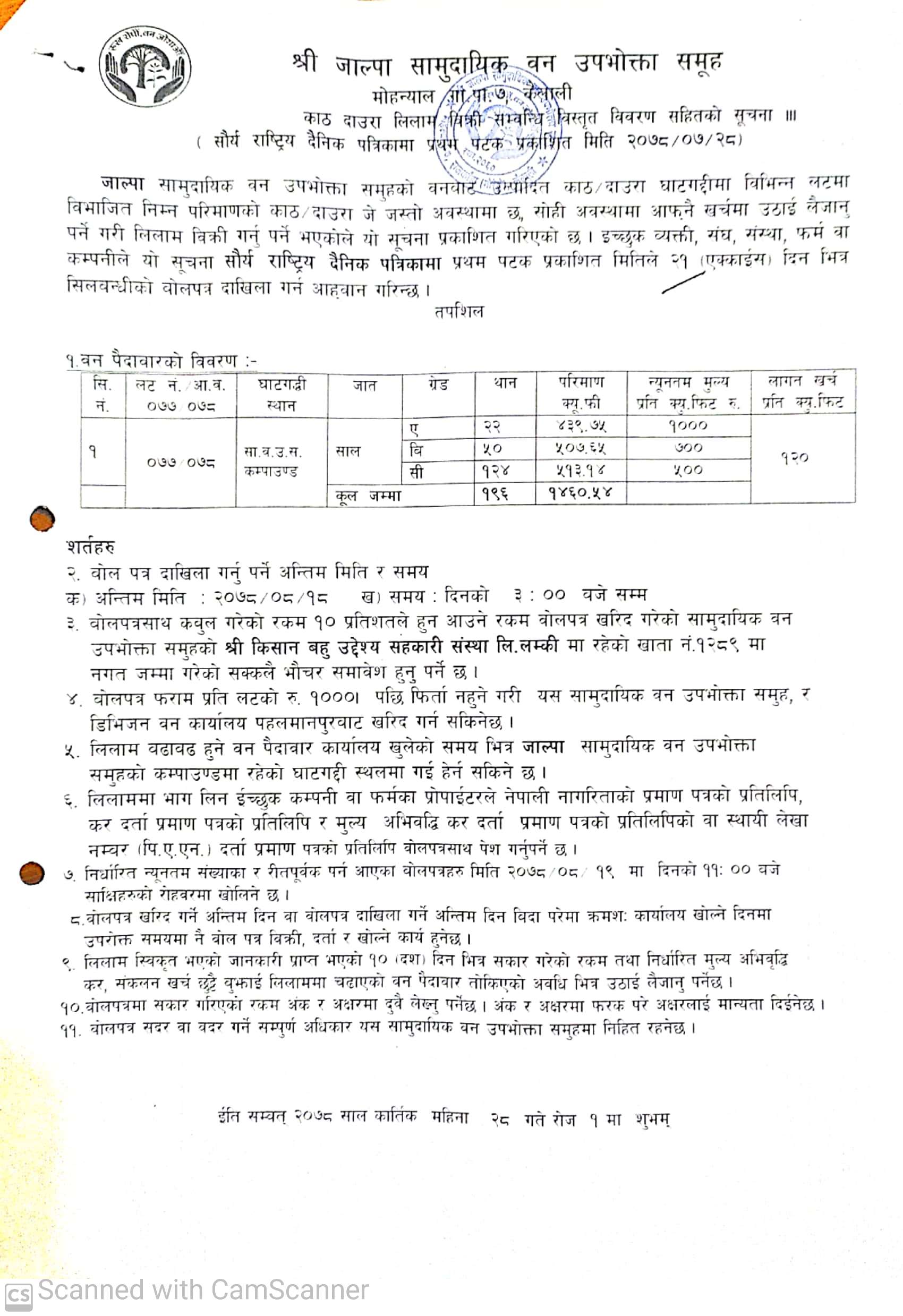 जाल्पा सामुदायिक वन उपभोक्ता समूह, मोहन्याल कैलालीको सूचना ।
