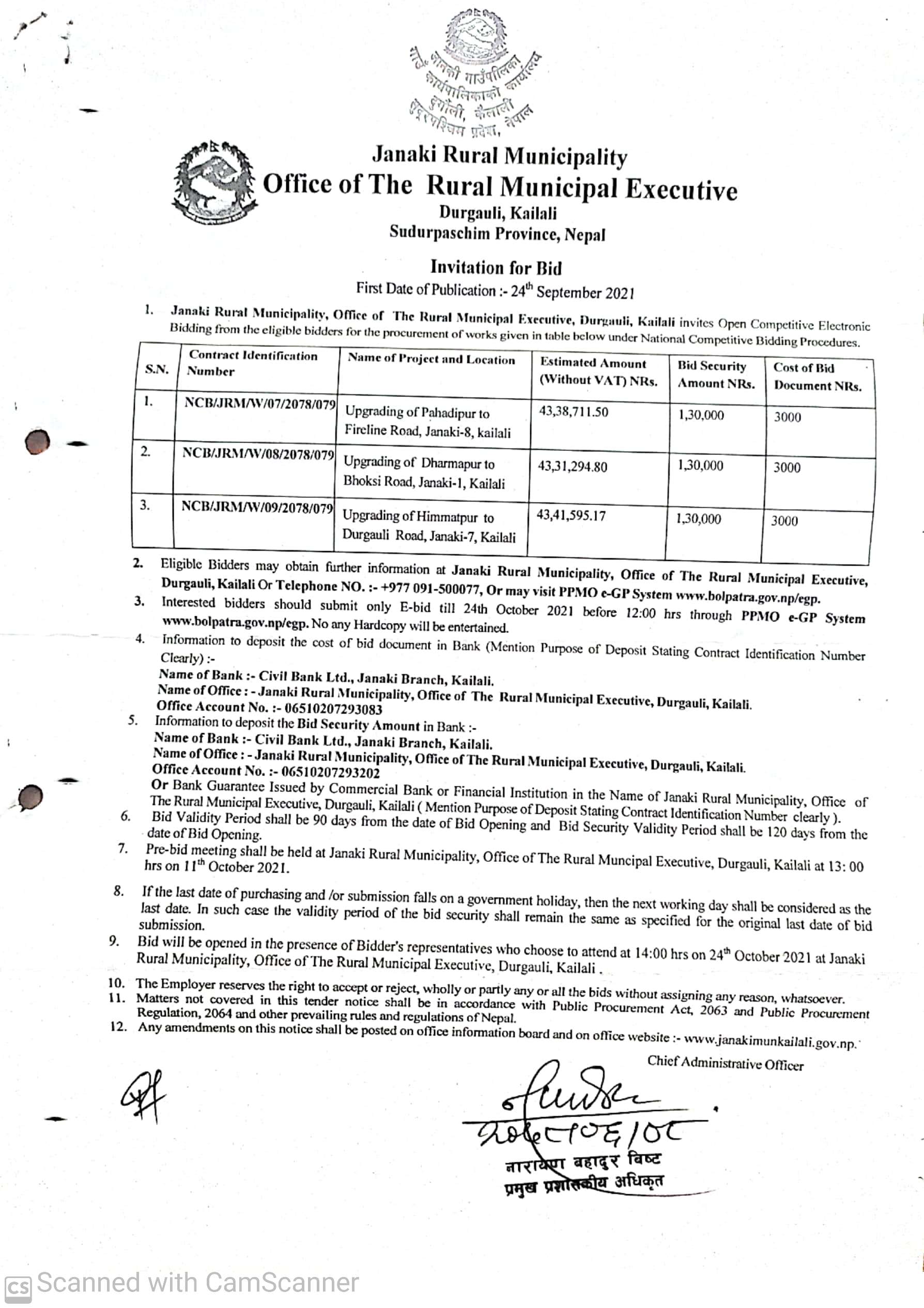 जानकी गाउँपाालिका कैलालीको बिडिङ सम्बन्धि सूचना ।