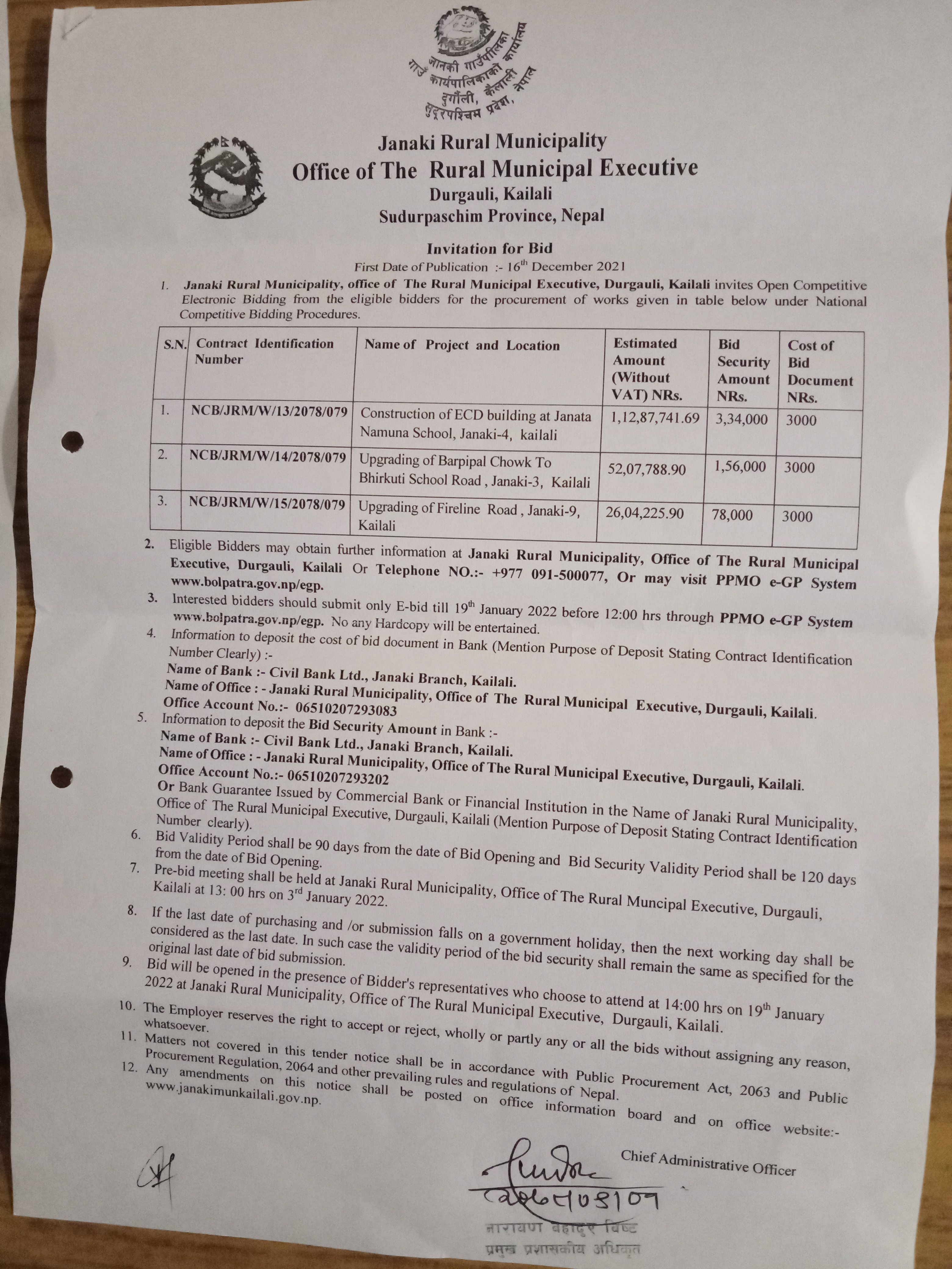 जानकी गाउँपालिका कैलालीको सूचना ।