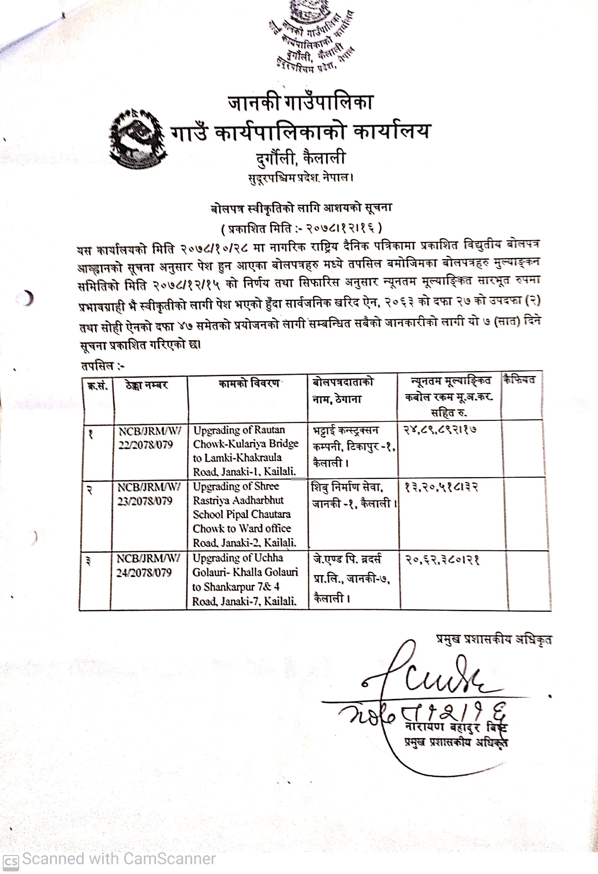 जानकी गाउँपालिका कैलालीको सूचना ।