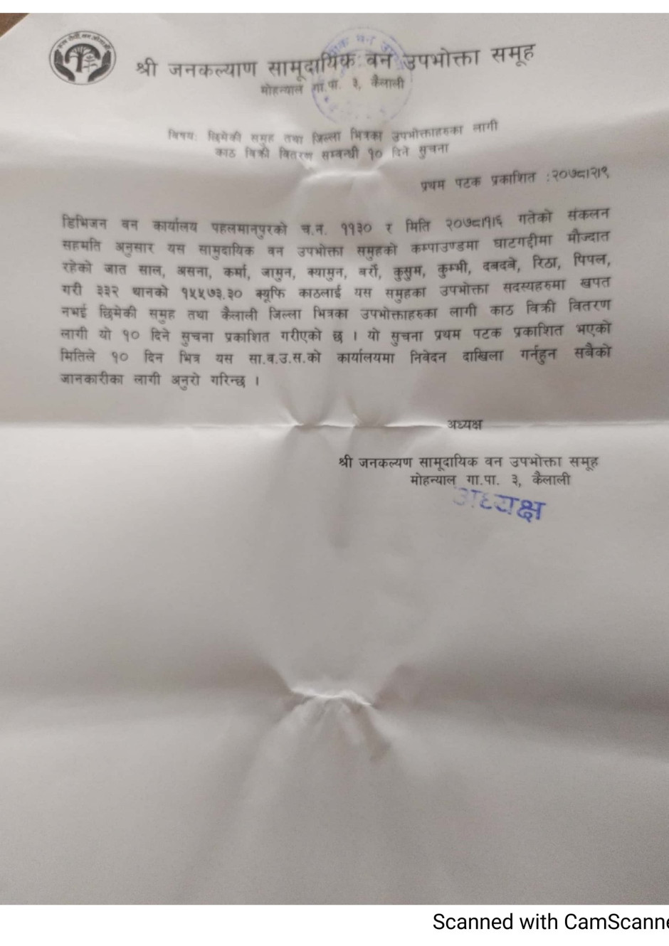 डिभिजन वन कार्यालय धनगढीको सूचना ।