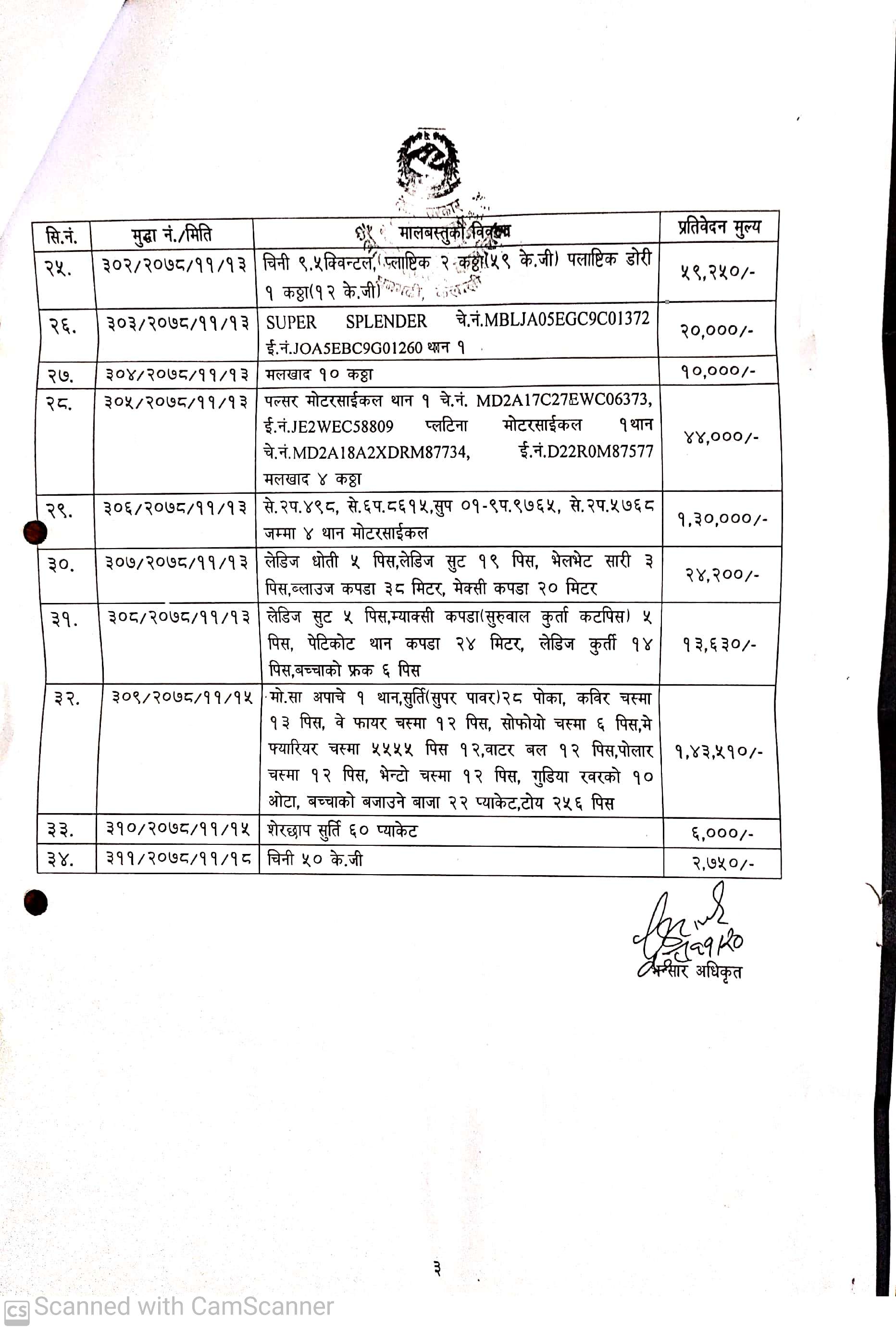 कैलाली जिल्ला अदालतको लिलामको सूचना । थान ३