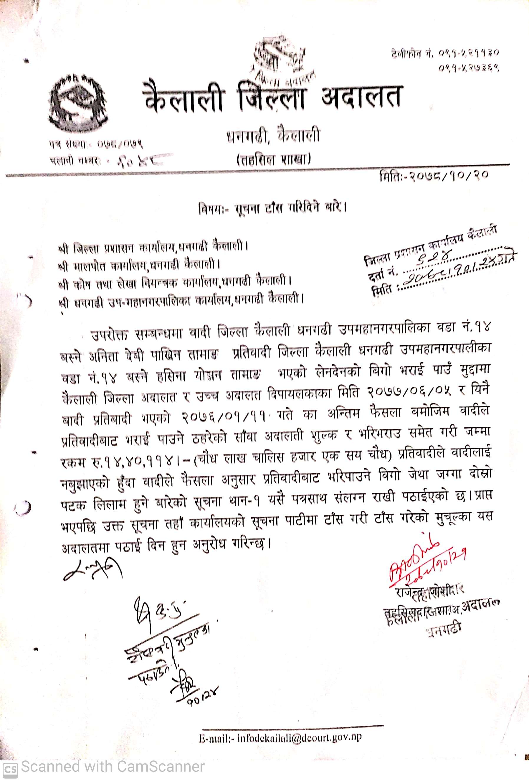 कैलाली जिल्ला अदालत धनगढीको सूचना ।