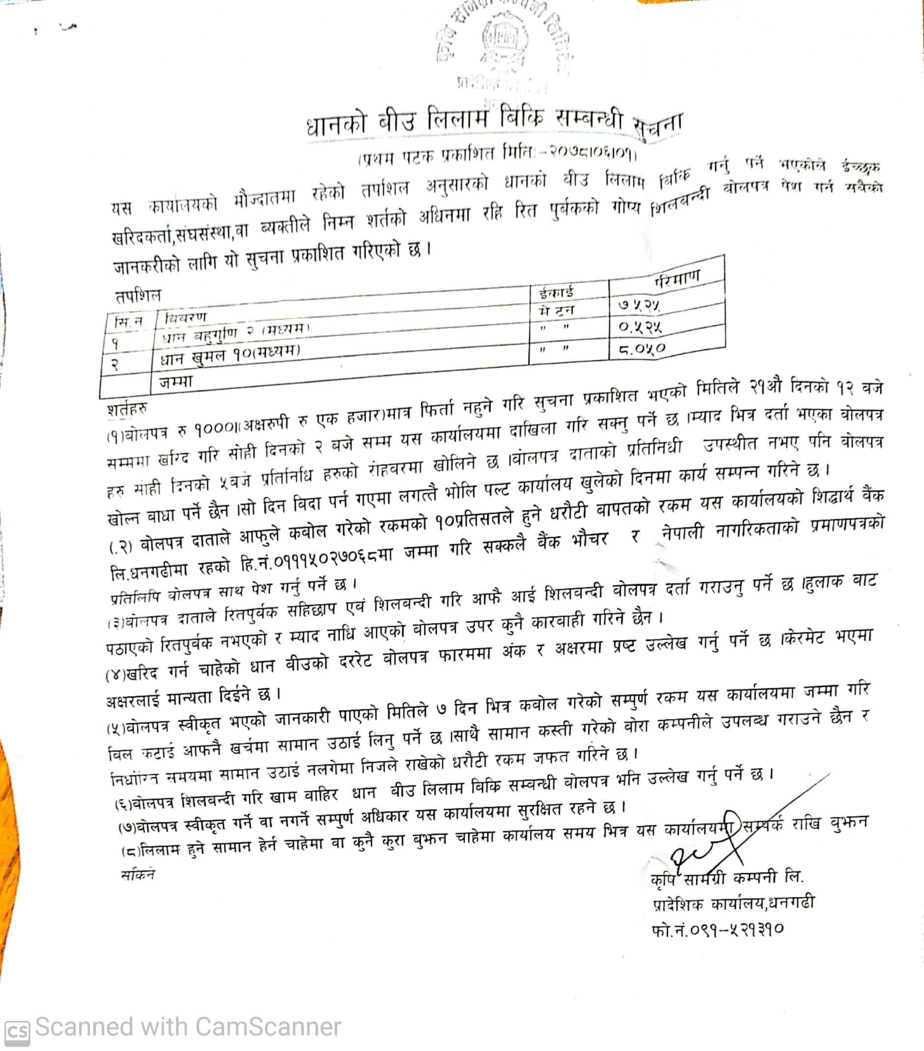 कृषि सामाग्री कं.लि. धनगढी कैलालीको सूचना ।