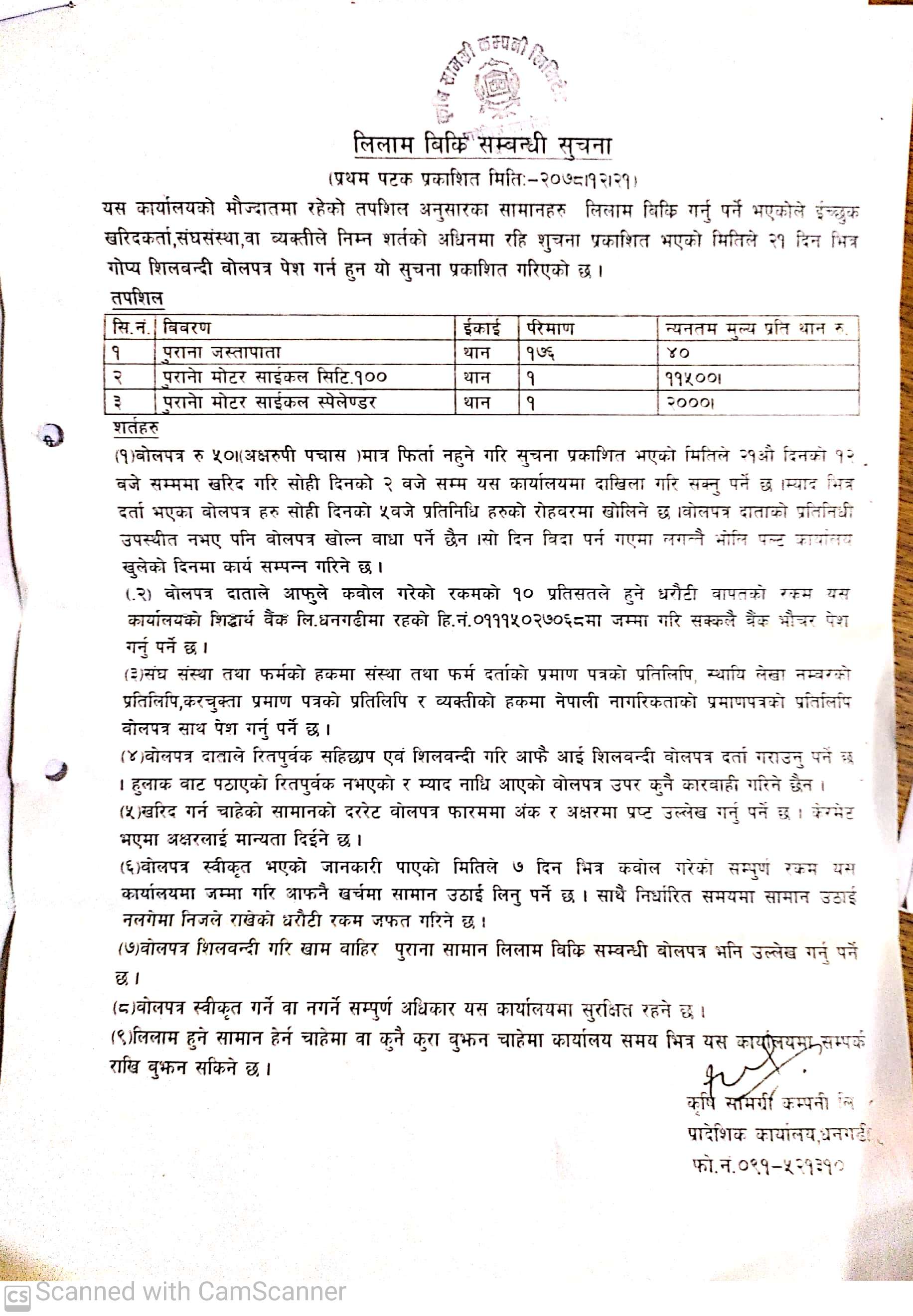 कृषि सामाग्री कम्पनी लि.को लिलाम सम्बन्धी सूचना ।