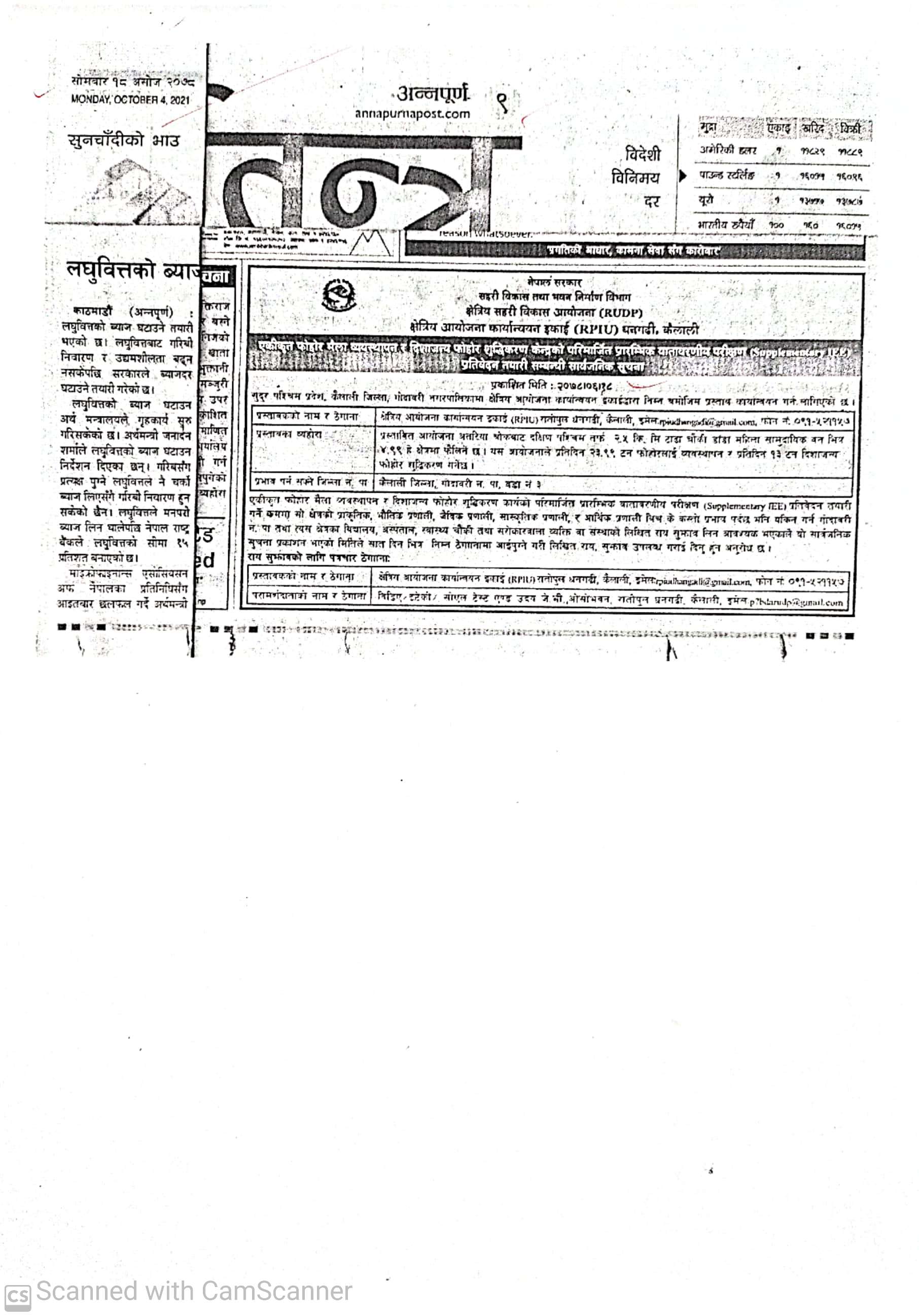 क्षेत्रीय शहरी विकास आयोजना, क्षेत्रीय आयोजना कार्यान्वयन इकाई धनगढीको सार्वजनिक सूचना ।