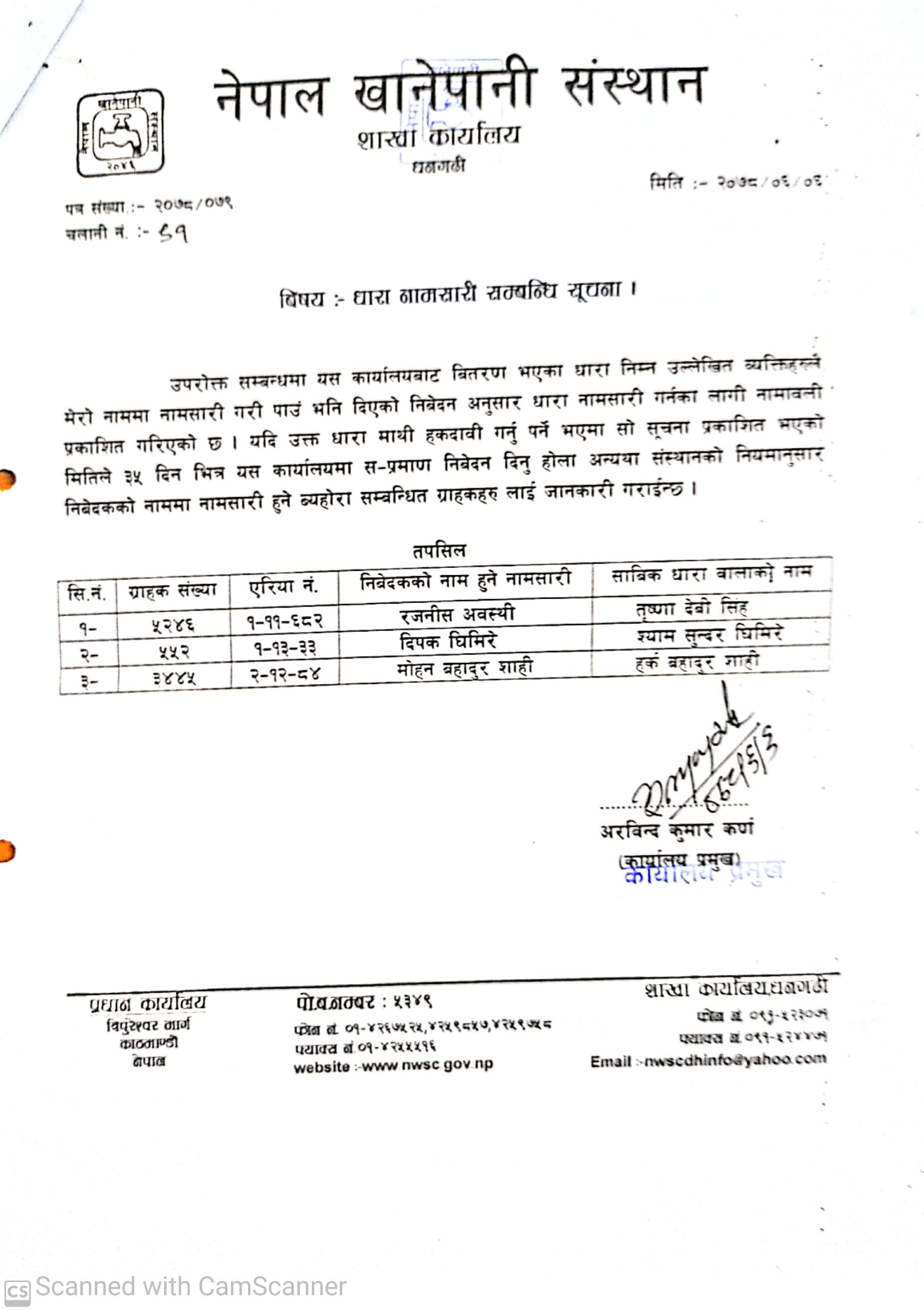 नेपाल खानेपानी संस्थान धनगढीको सूचना ।