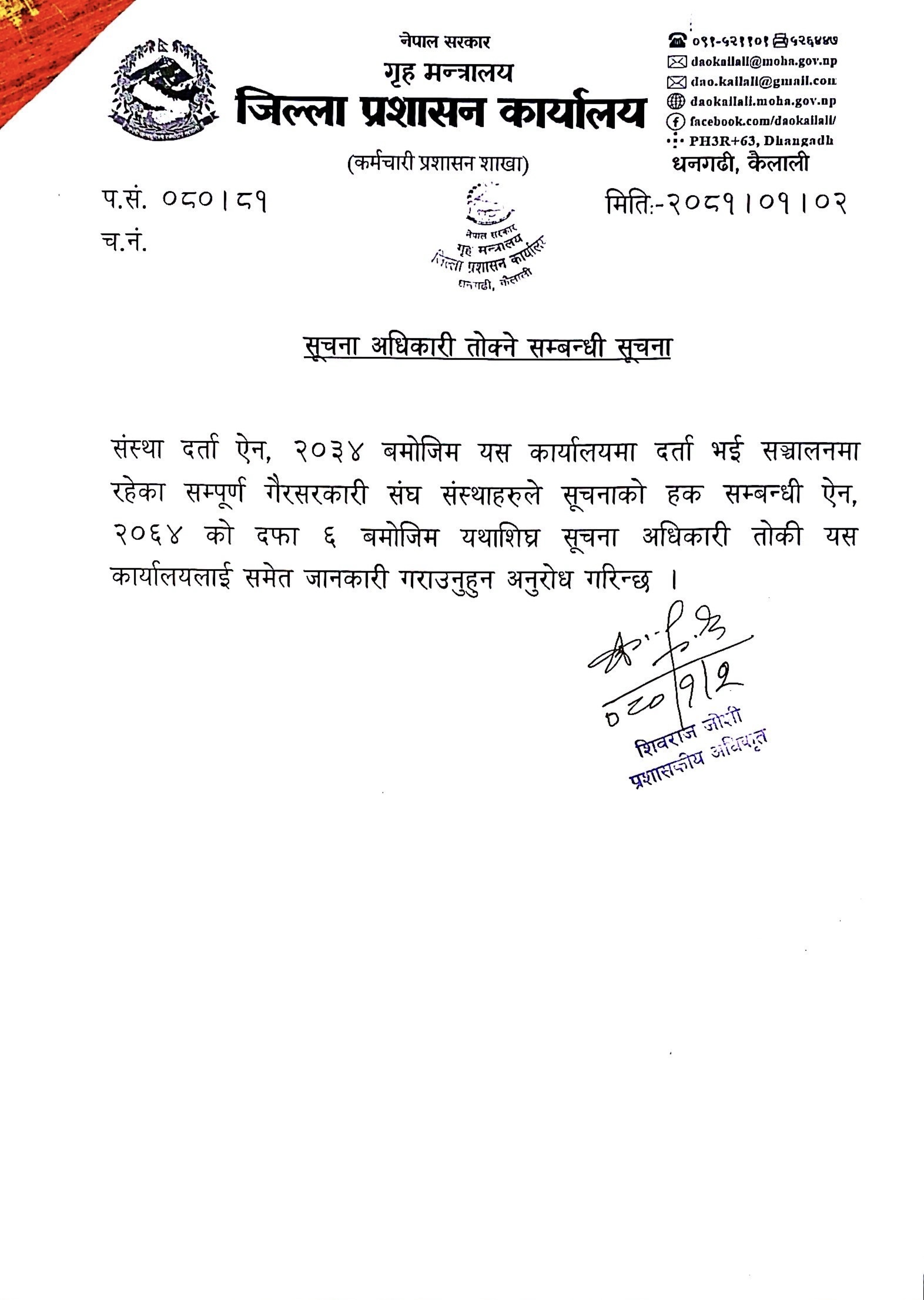 सूचना अधिकारी तोक्ने सम्वन्धि सूचना