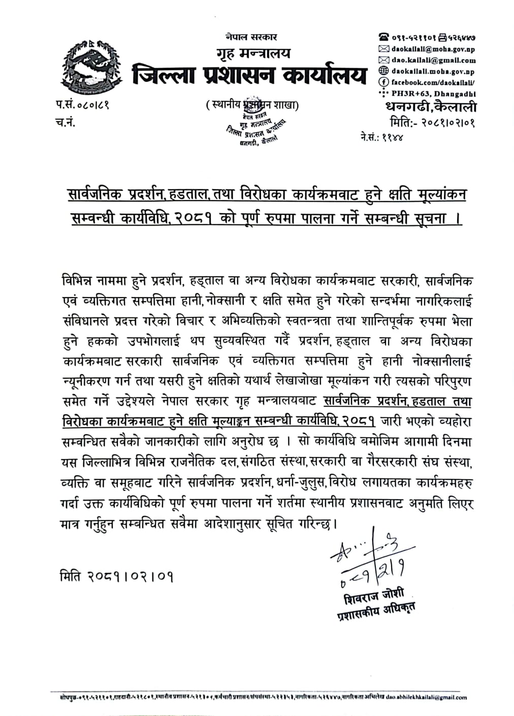 © सर्वाधिकार सुरक्षित जिल्ला प्रशासन कार्यालय,कैलाली