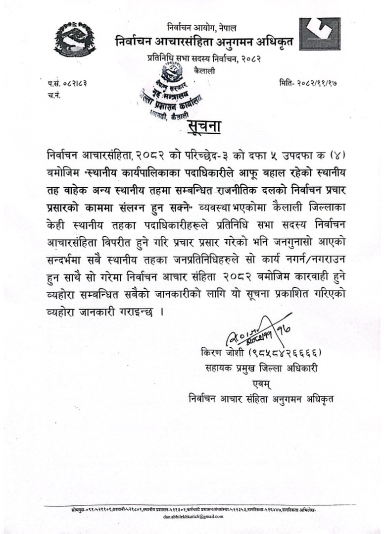 सूचना (मतदानको दिन मोवाईल आदि नवोक्ने सम्वन्धि)