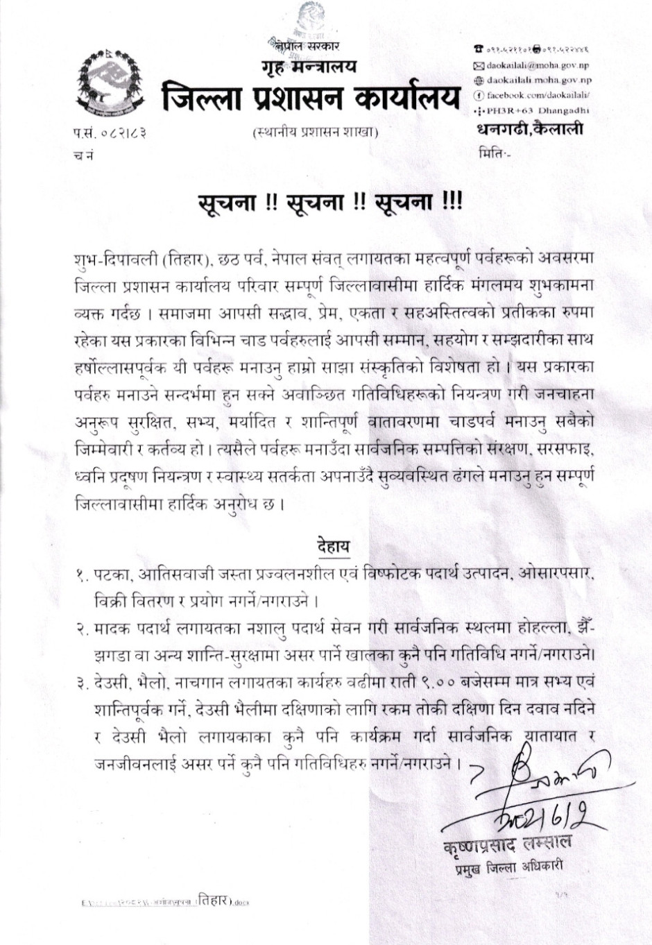 © सर्वाधिकार सुरक्षित जिल्ला प्रशासन कार्यालय,कैलाली